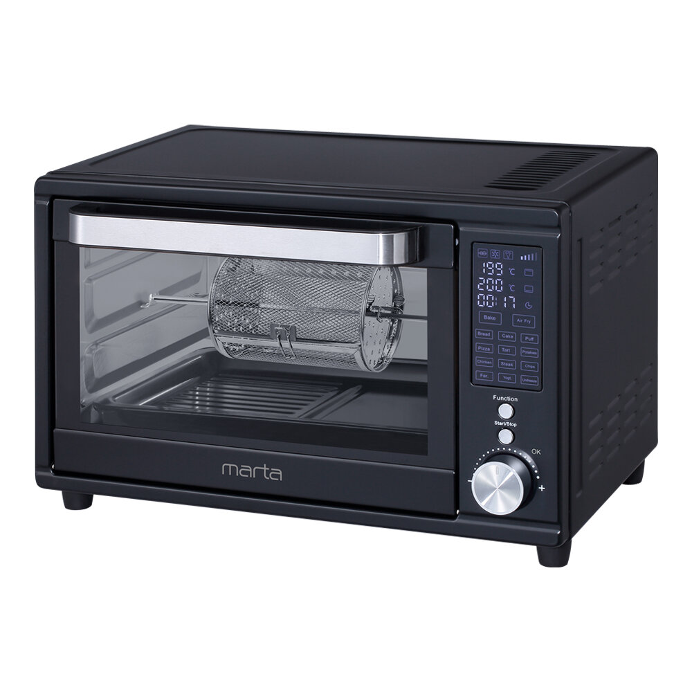Аэрогриль духовка духовой шкаф мини-печь гриль аэрофритюрница сушилка тостер 7 в 1 MARTA MT-EO4294C 32 литра конвекция шашлычница аэрофритюрница вертел черный жемчуг
