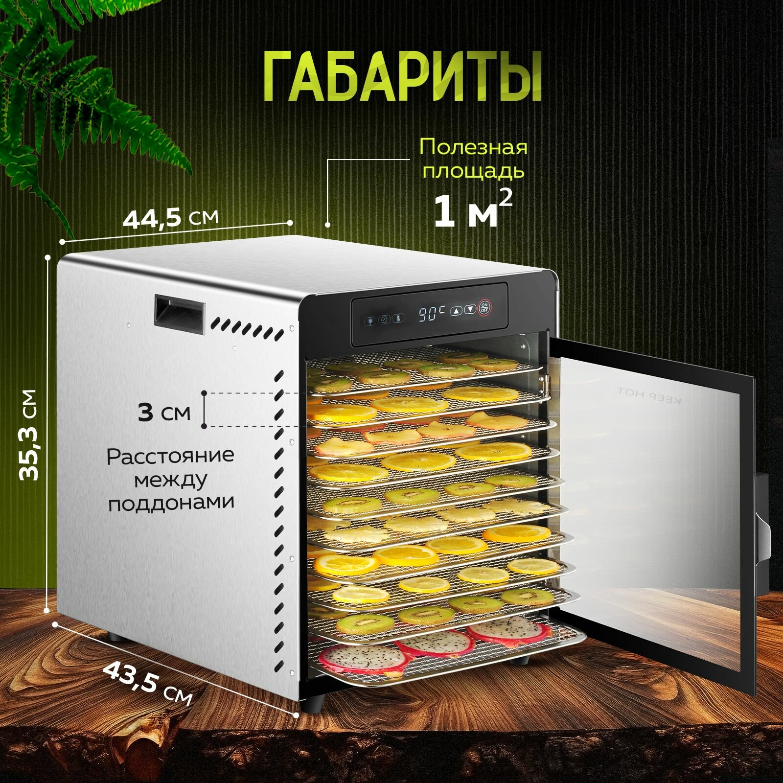 Сушилка для овощей и фруктов, мяса и рыбы профессиональная Keep Hot, 11 уровней, дегидратор горизонтальный электрический интересное: