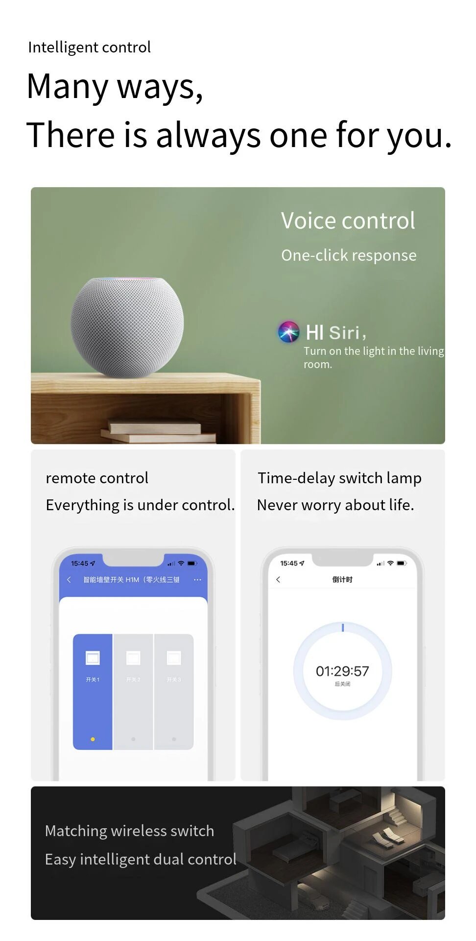 Купить Умный настенный выключатель Aqara H1M, Wireless 2 key