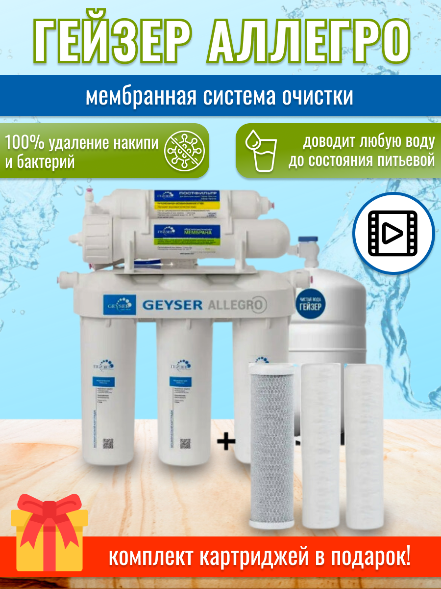 Гейзер Аллегро без крана + подарок Комплект префильтров интересное: