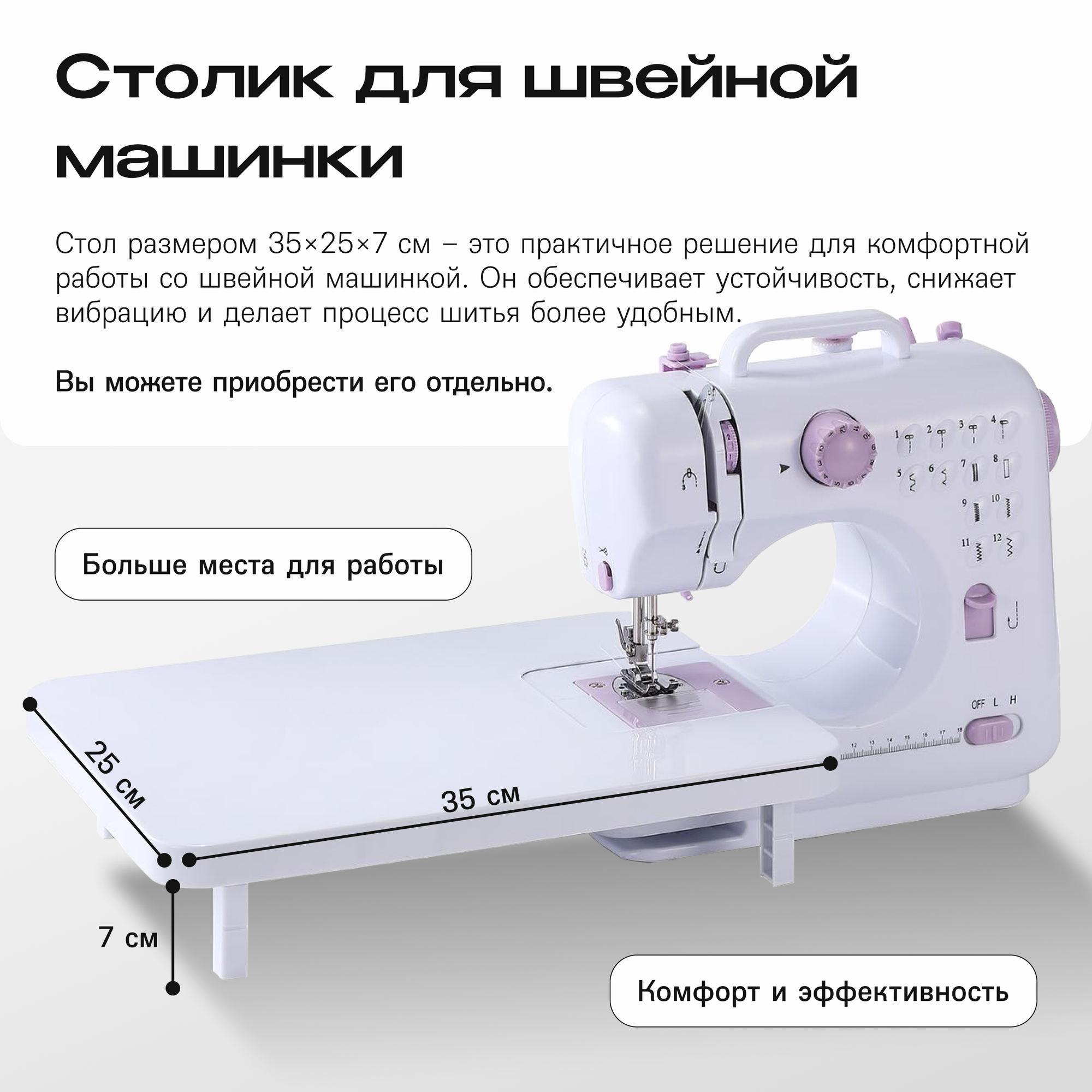 Швейная мини-машинка, 12 типов стежков, 2 скорости + педаль, белая интересное: