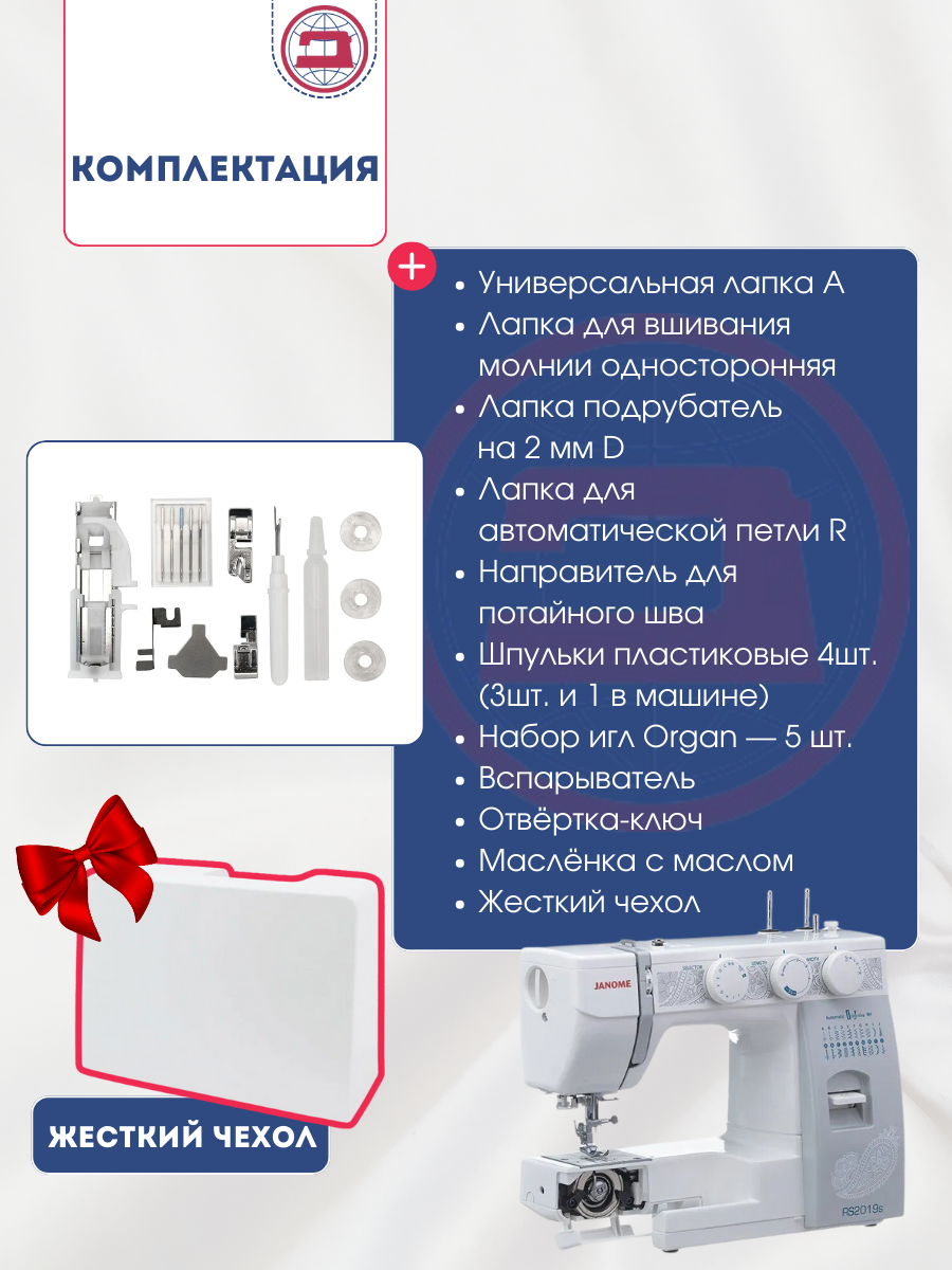 Швейная машина Janome RS2019s, вертикальный челнок ,19 операций интересное: