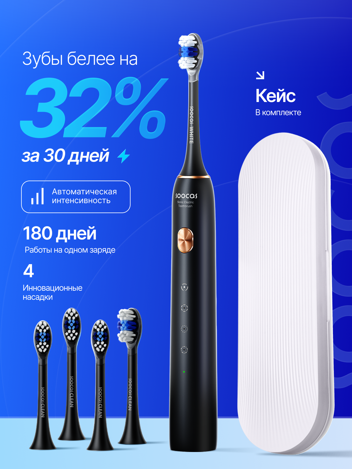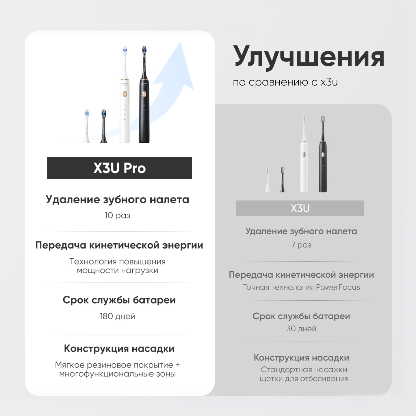 Электрическая зубная щетка Soocas X3U Pro (Ростест) четыре насадки, звуковая, черная интересное: