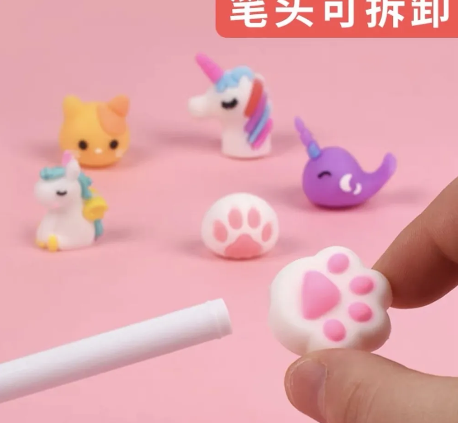 Набор гелевых розовых ручек с фигурками 20 шт. цвет чернил-черный