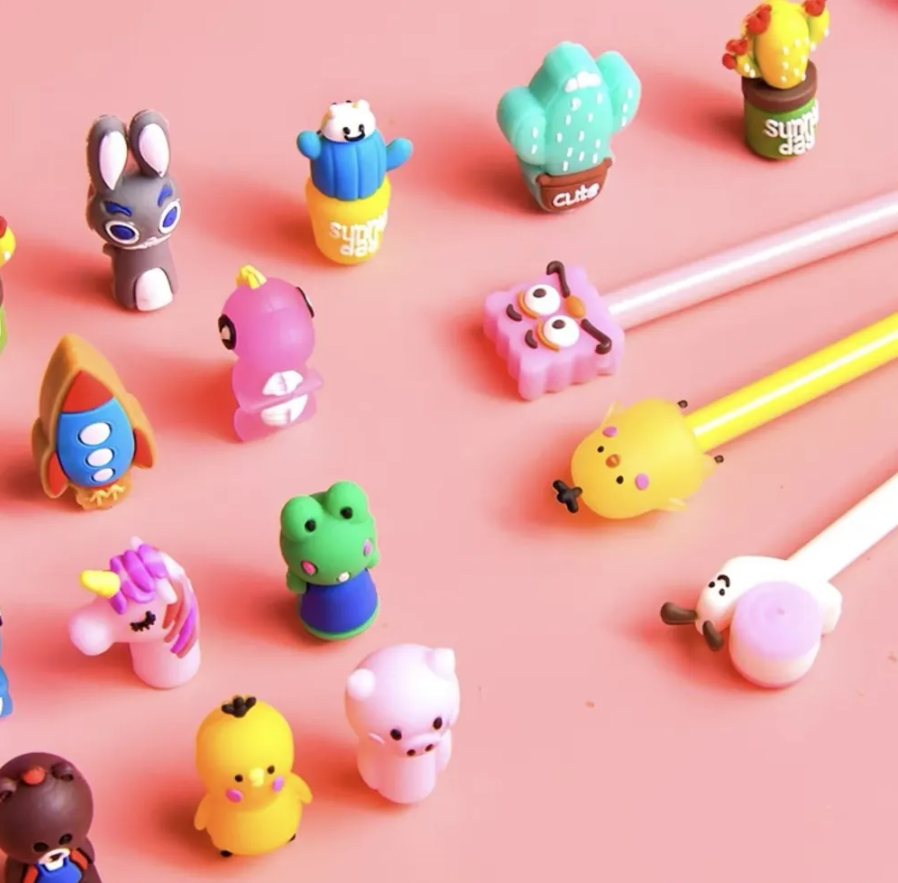 Набор гелевых розовых ручек с фигурками 20 шт. цвет чернил-черный интересное: