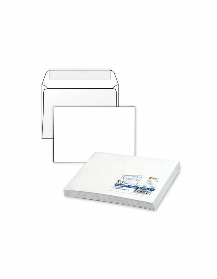 Купить Конверты курт С5, 162х229 мм, отрывная лента, 80 г/м2, комплект 50 шт, внутренняя запечатка