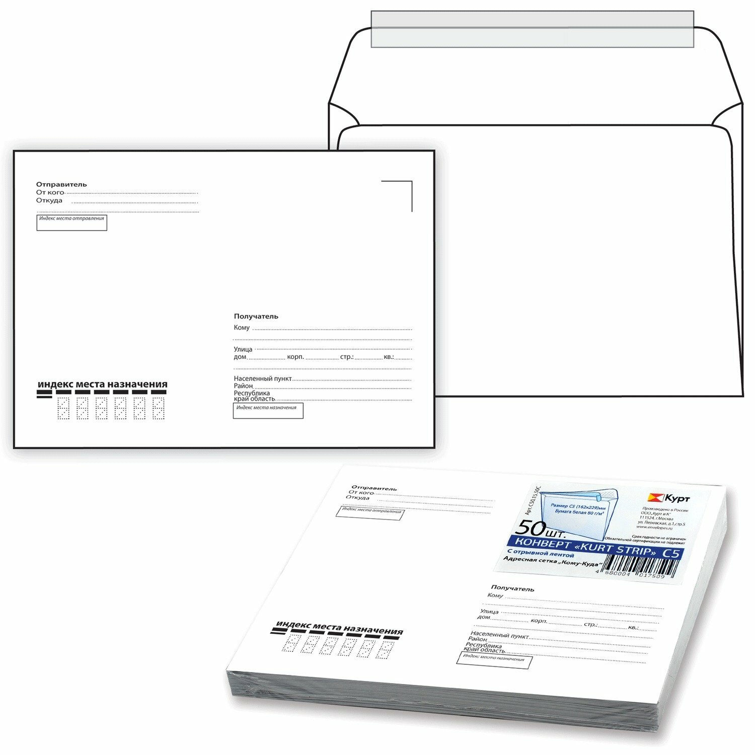 Конверты С5 Курт (162х229 мм), отрывная полоса, "Куда-Кому", комплект 50 шт., внутренняя запечатка, С50.15.50С