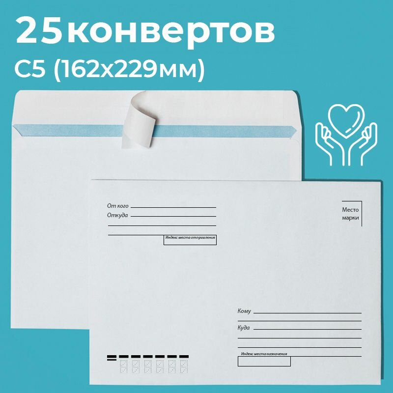 Купить Почтовые конверты бумажные С5 (162х229мм) 25 шт. отрывная лента, запечатка кому-куда для документов C5