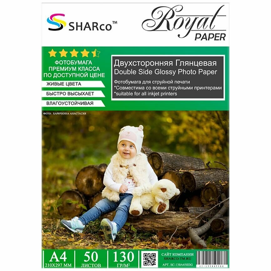 Фотобумага SHARco глянцевая двухсторонняя 130 г, А4, 50 листов интересное: