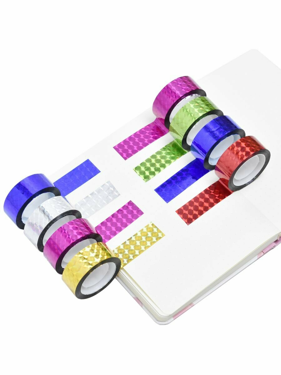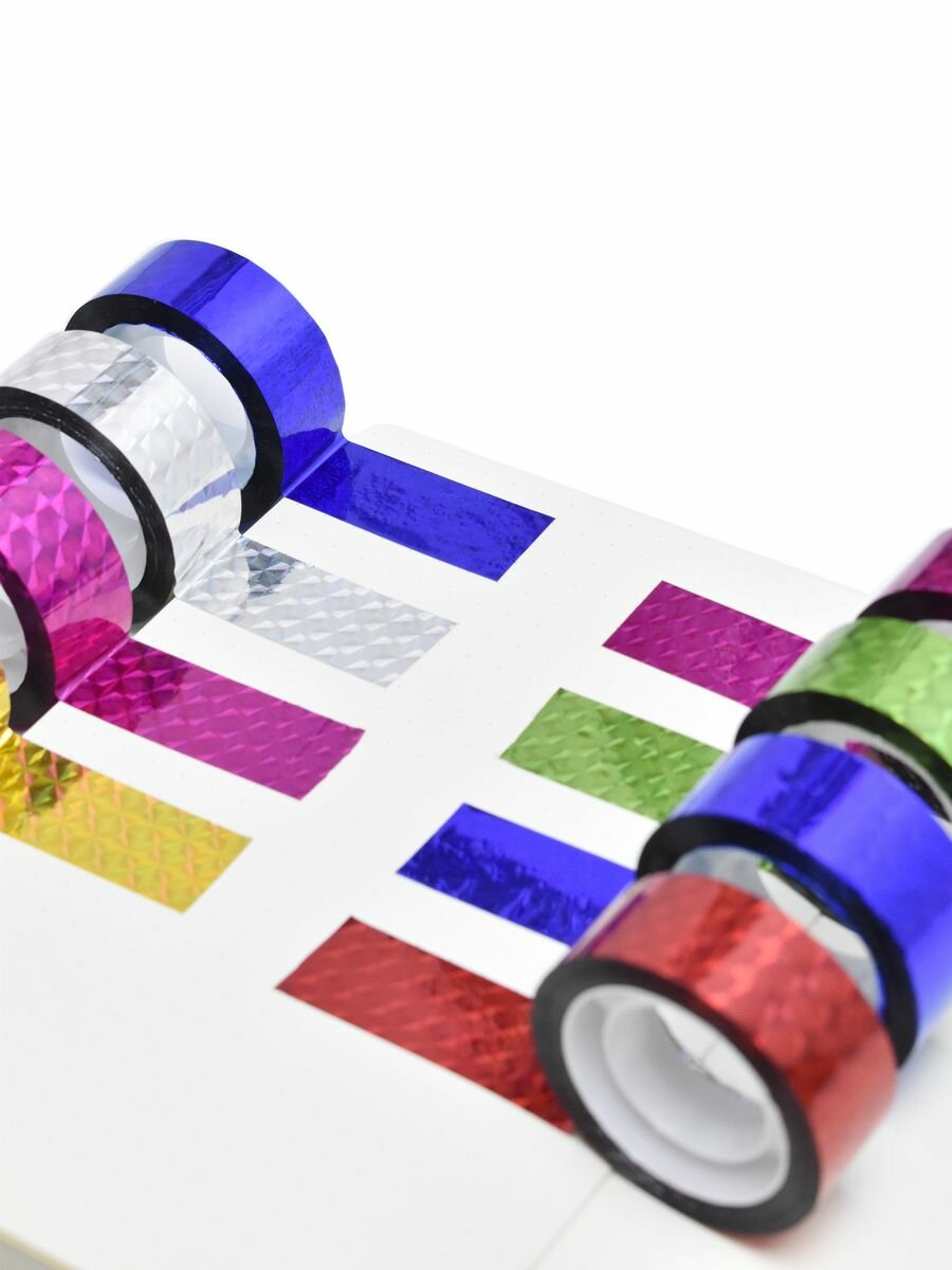 Купить Скотч декоративный голографический однотонный 8 шт