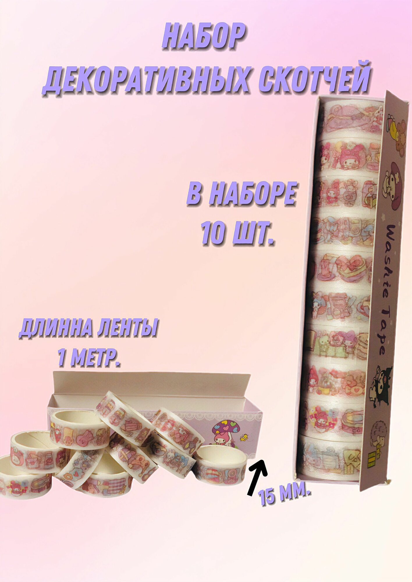 Декоративный скотч для скрапбукинга, 10 лент по 1 метру/клейкая лента интересное: