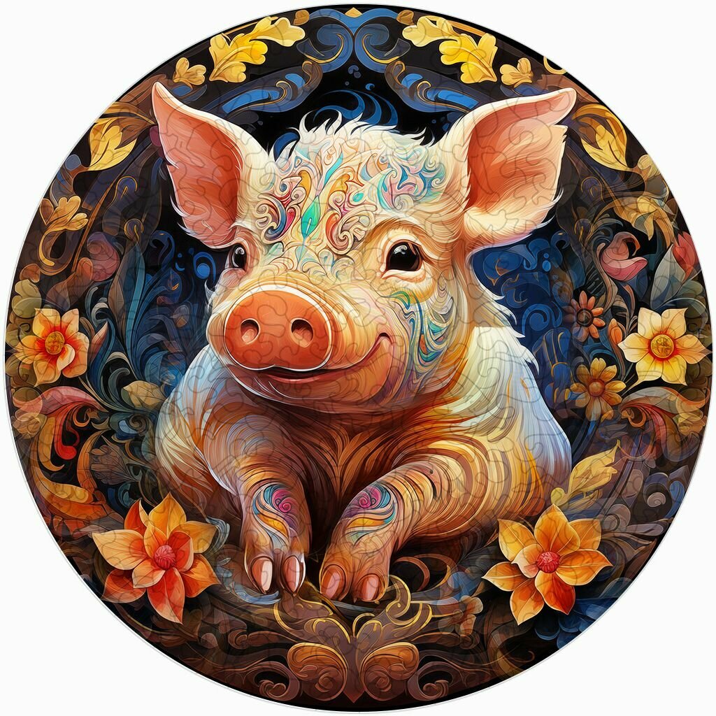 Купить Деревянный пазл BoberBox "Мандала Поросёнок", 220 деталей
