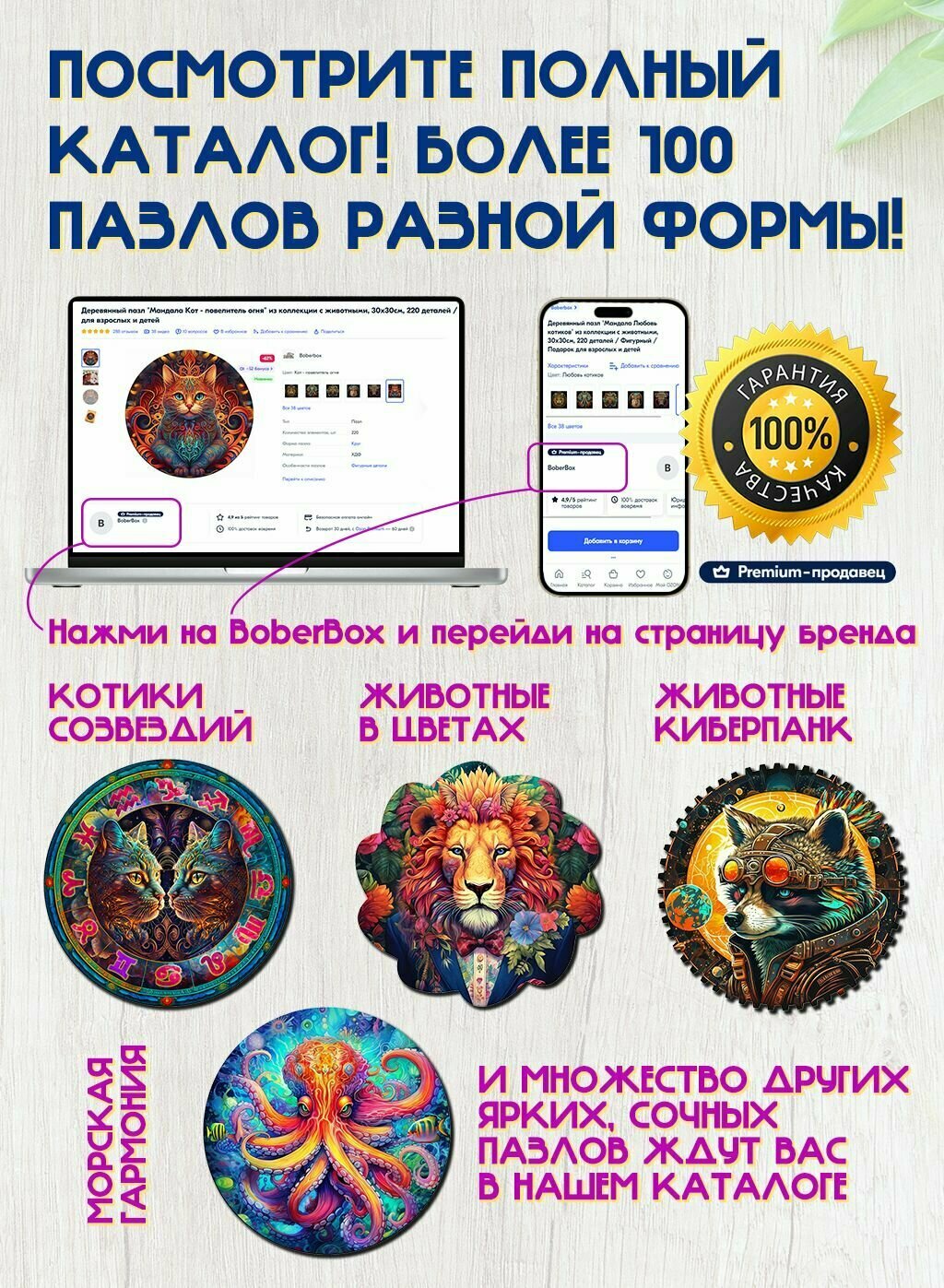 СохранитьДеревянный пазл BoberBox "Мандала Кот - повелитель холода", 220 деталей интересное: