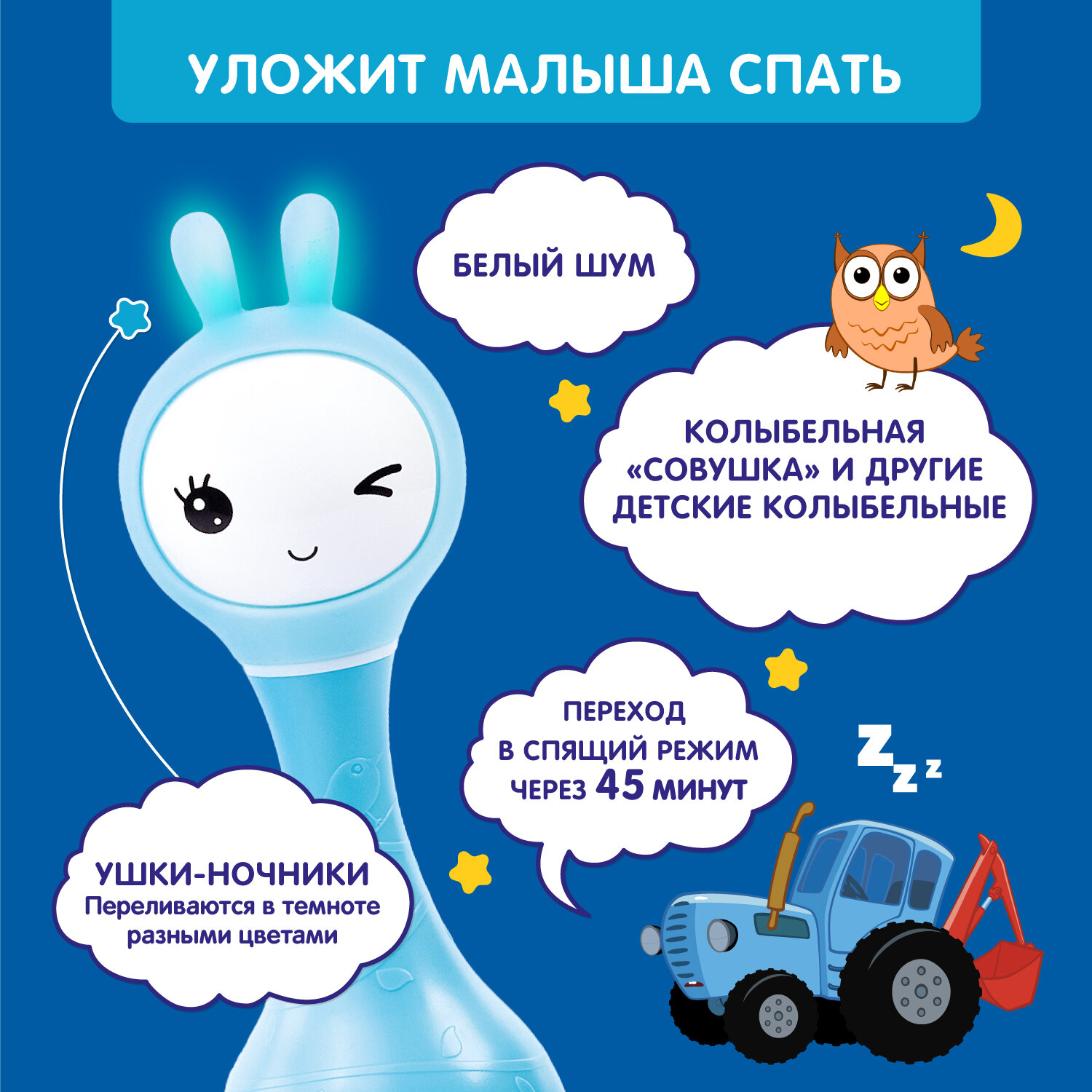 Интерактивная музыкальная игрушка Умный Зайка® alilo R1 Синий Трактор. Распознавание цветов. Для мальчиков, девочек интересное:
