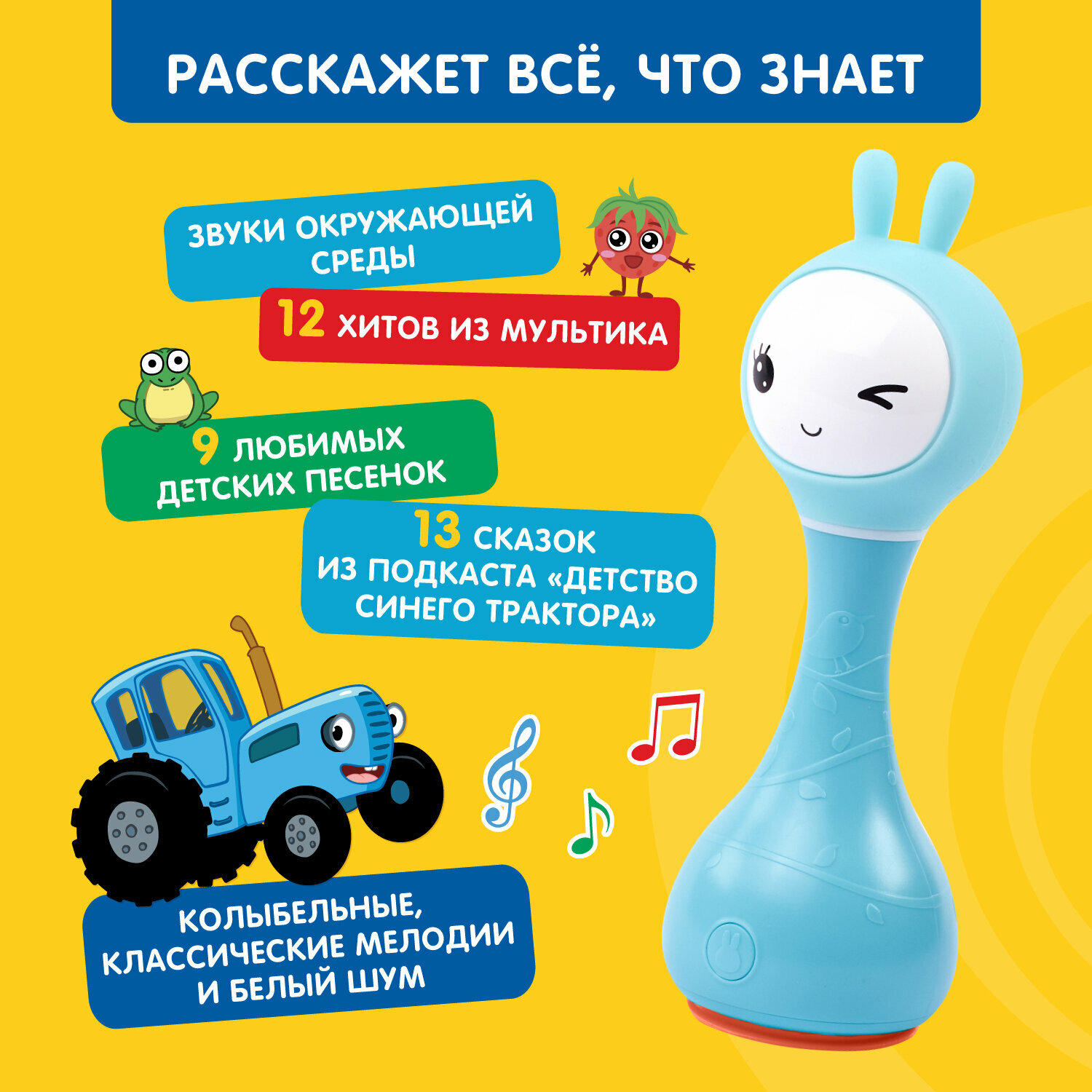 Купить Интерактивная музыкальная игрушка Умный Зайка® alilo R1 Синий Трактор. Распознавание цветов. Для мальчиков, девочек