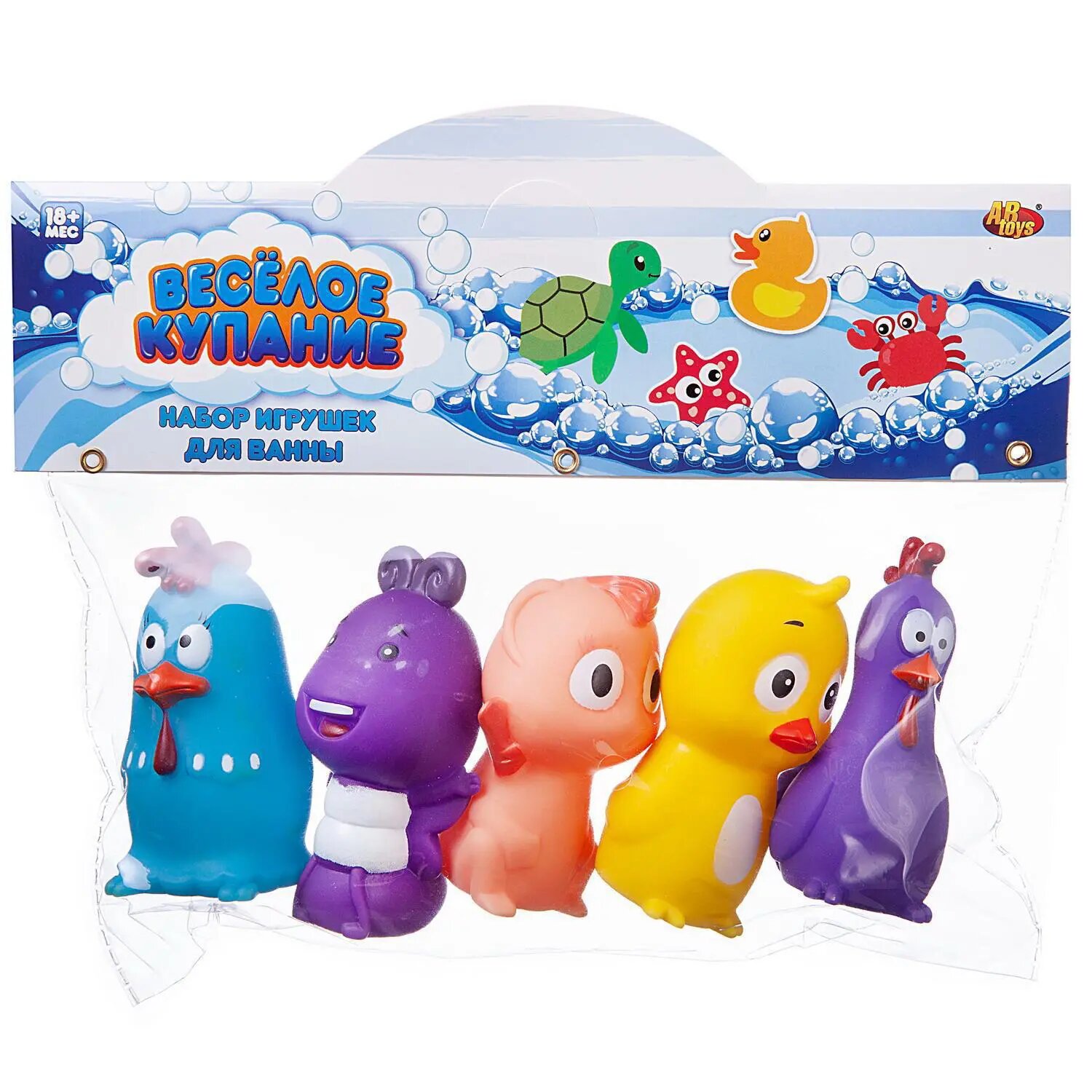 Купить Веселое купание. Набор игрушек для ванны, 5 предметов (утенок, петушок голубой, петушок фиолетовый, динозаврик, бабочка-мотылек)