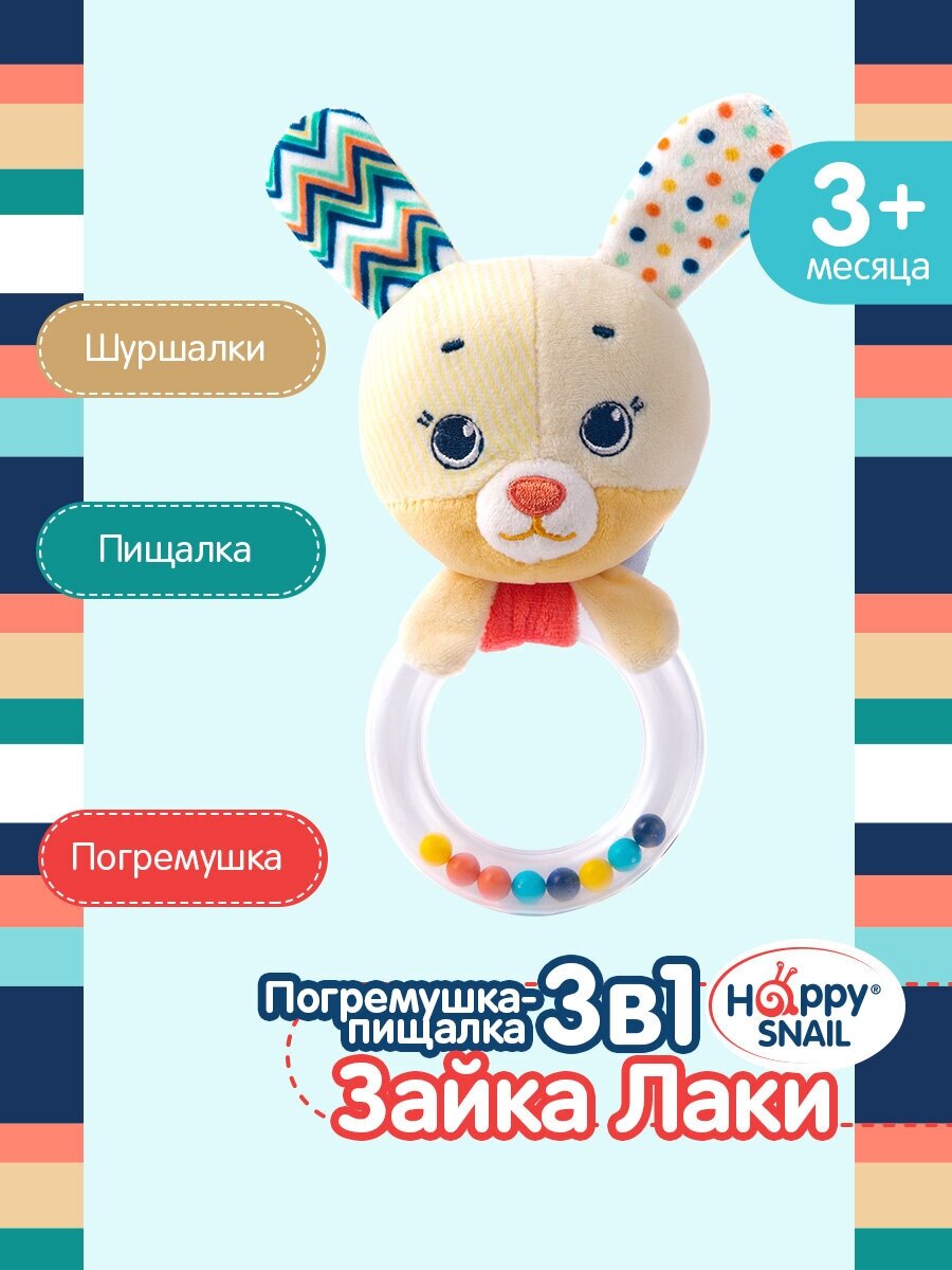 Купить Happy Snail, Погремушка-пищалка Зайка Лаки Хеппи Снэйл