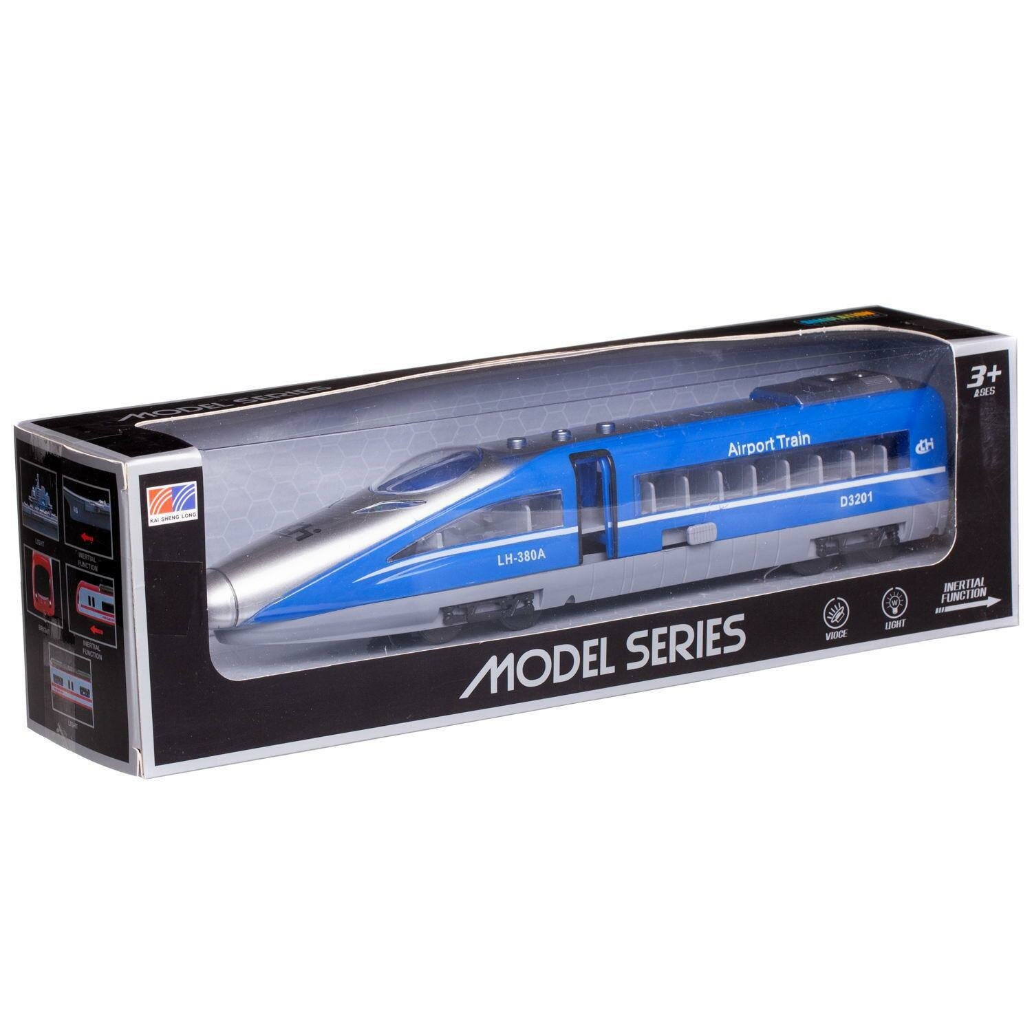 Купить Поезд скоростной, инерционный, синий, размер коробки 32x7,5x9,5, со световыми и звуковыми эффектами