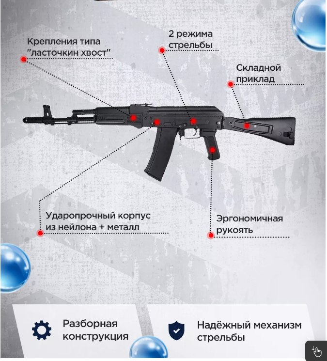 | Тип боеприпасов | гидрогелевые шарики / мягкие шарики |