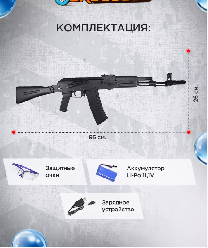 | В комплекте | автомат, глушитель, деталь ствола, защитные очки |