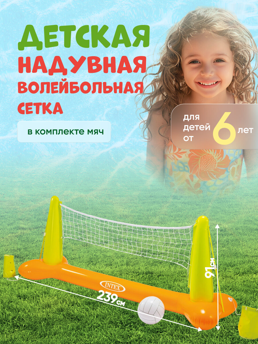 Волейбольная сетка надувная для бассейна Intex 239х64х91 см, в комплекте с мячом, от 6 лет, 56508 интересное:
