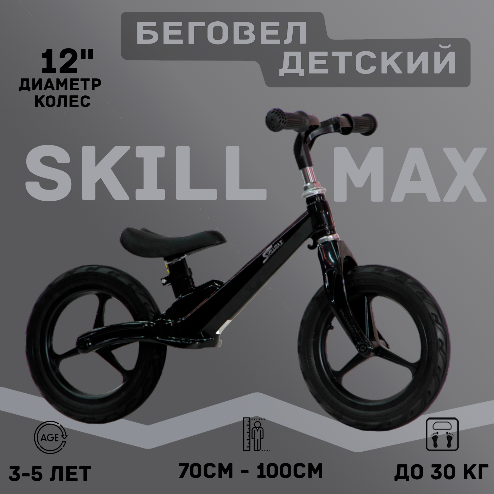 Беговел Skill Max 12 Черный, магниевый сплав интересное: