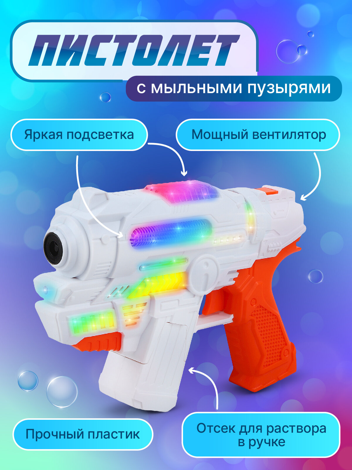 Детский пистолет с мыльными пузырями ТМ "компания друзей", Серия "Маленький воин", мыльный раствор 2*30 мл, белый, JB2700172 интересное: