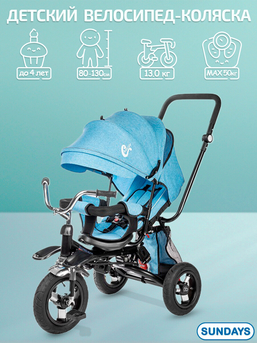 Велосипед трехколесный детский Sundays SJ-BT-16, голубой интересное: