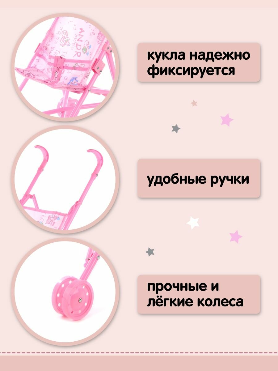 Коляска трость детская прогулочная для кукол до 40 см, Amico / Складная, игрушечная, пластиковая, легкая интересное: