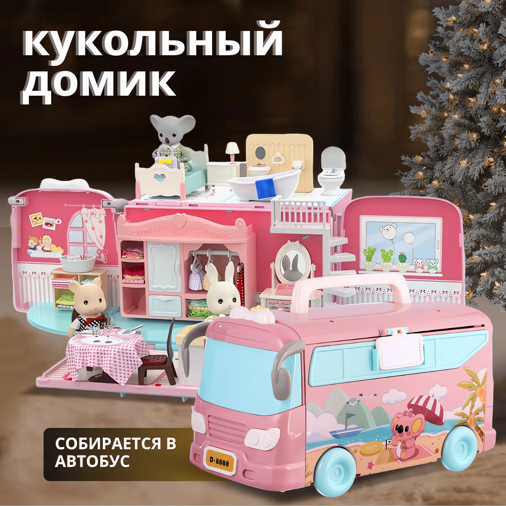 Купить Кукольный домик с мебелью конструктор собирается в школьный автобус-сумку совместим с Sylvanian families
