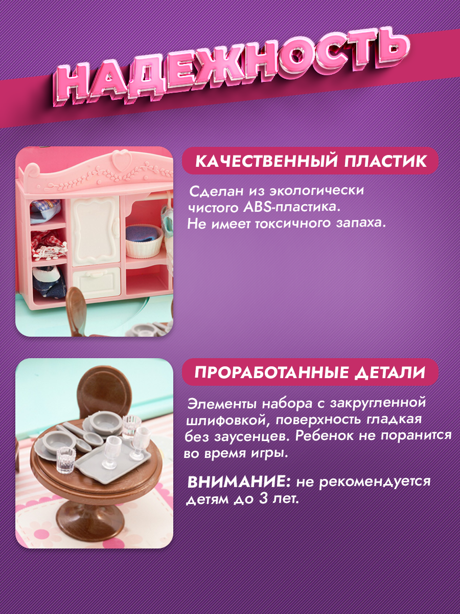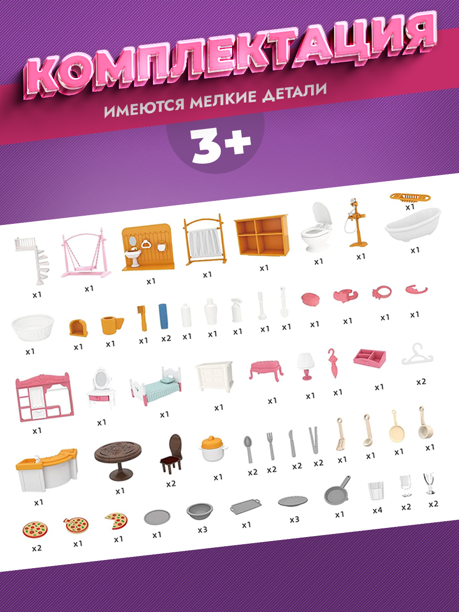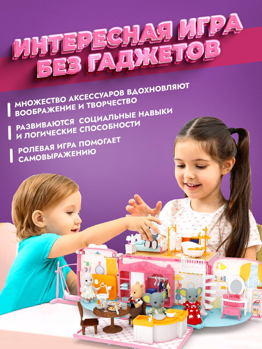 Развивающий кукольный домик с мебелью и подсветкой — Конструктор домик для кукол и фигурок животных