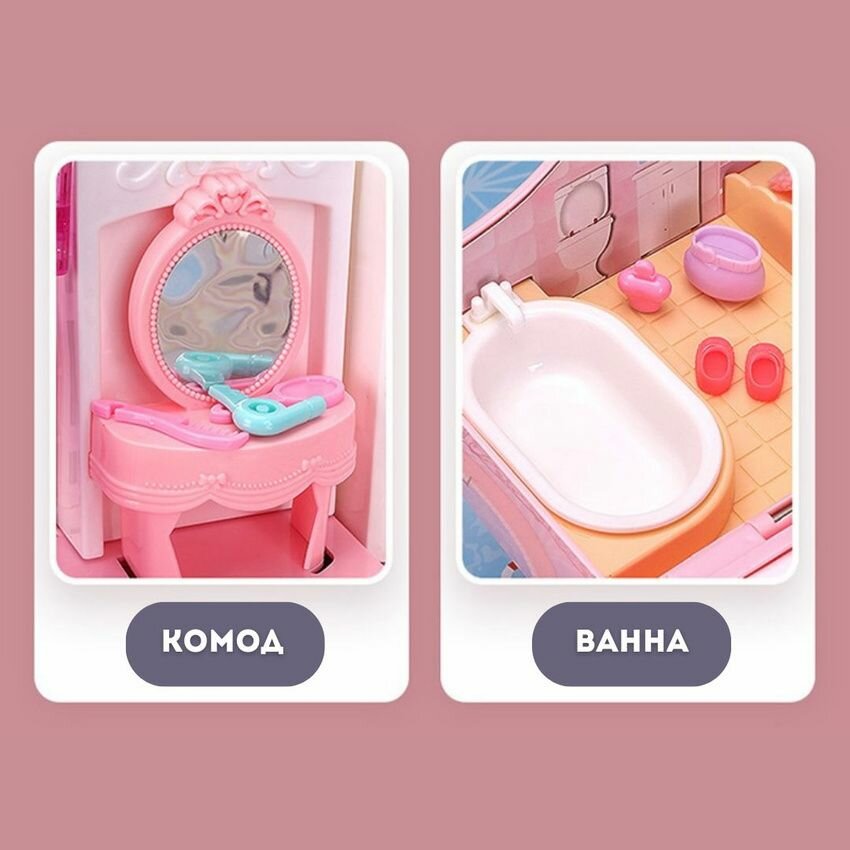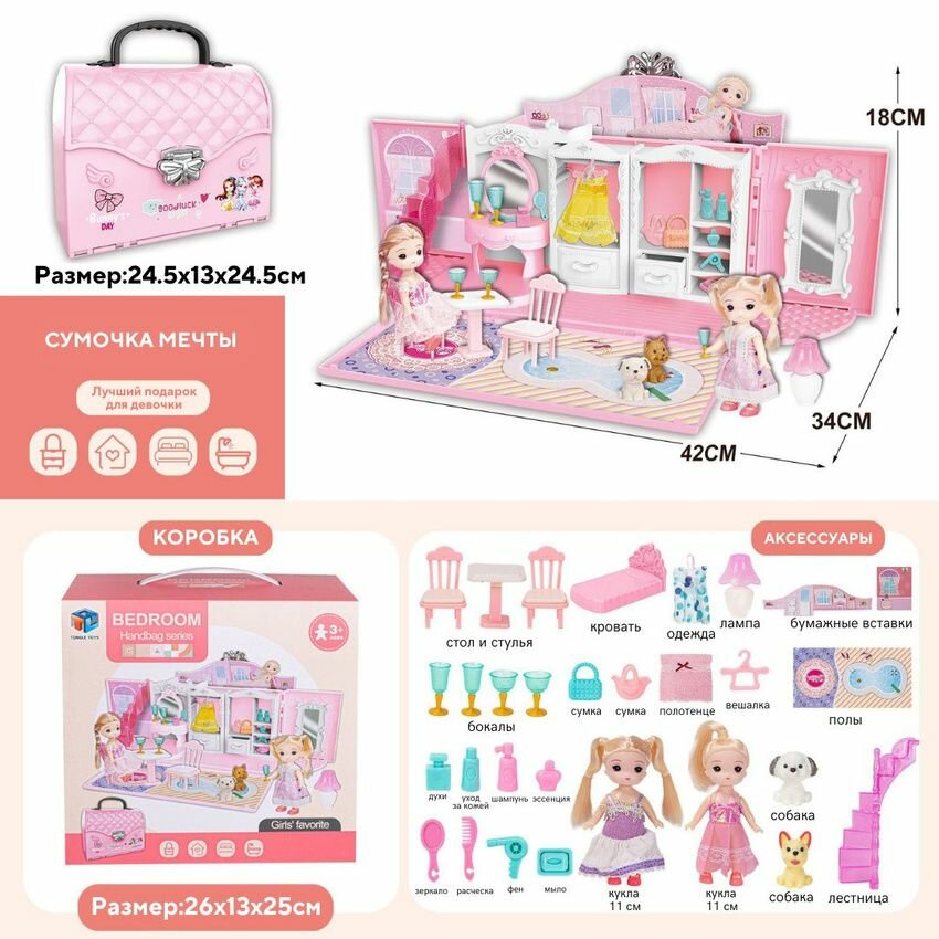 Кукольный домик сумочка с мебелью и куклами, детский игровой набор для девочки интересное: