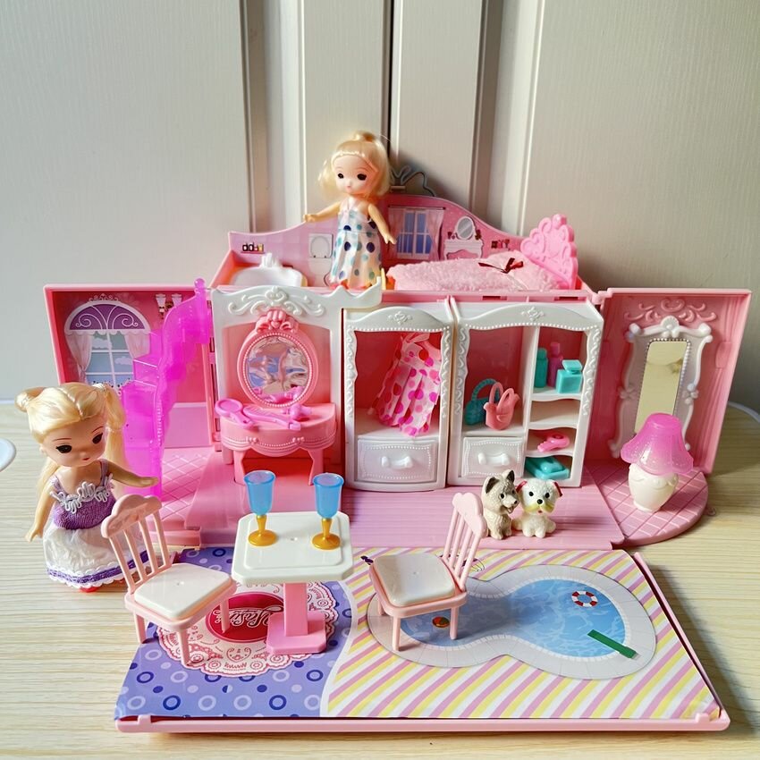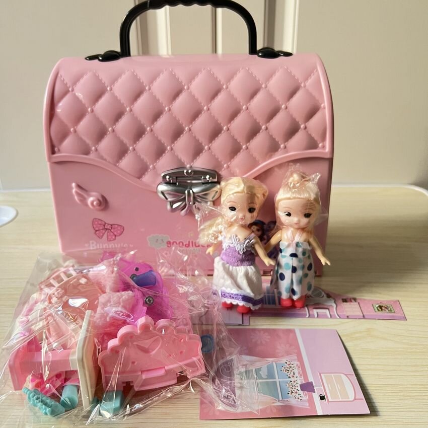 Купить Кукольный домик сумочка с мебелью и куклами, детский игровой набор для девочки