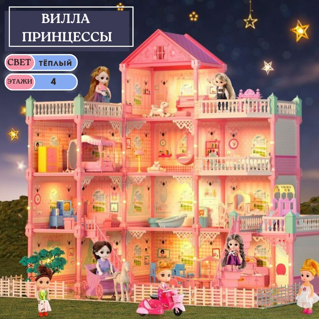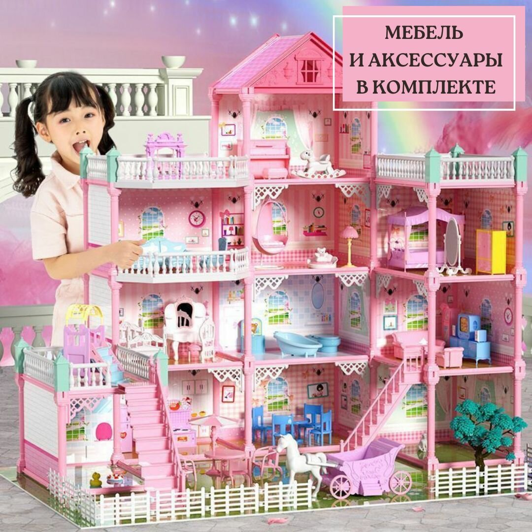 Купить Кукольный домик с мебелью и куклой, игрушечный дом для кукол состоит из 4х этажей, новогодний подарочный детский игровой набор для девочки