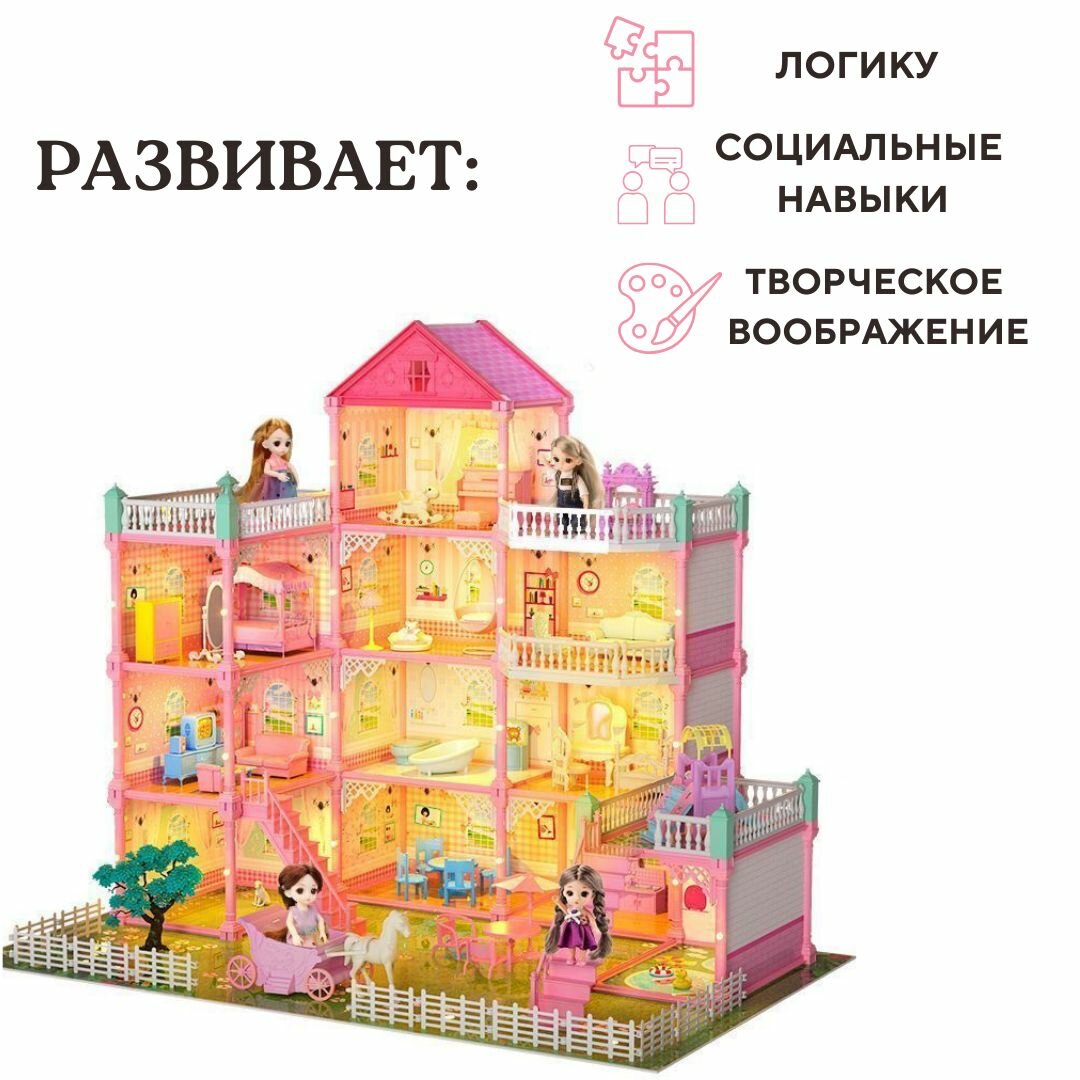 Кукольный домик с мебелью и куклой, игрушечный дом для кукол состоит из 4х этажей, новогодний подарочный детский игровой набор для девочки интересное: