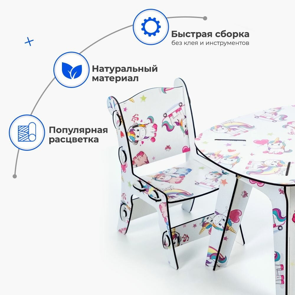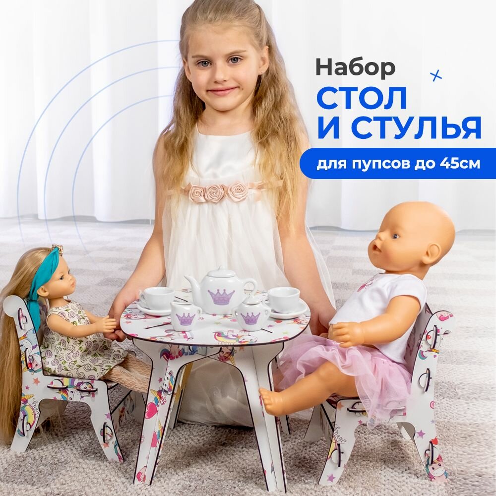 Купить Стол и стулья для кукол пупсов до 45-53 см "Веселые Единороги"