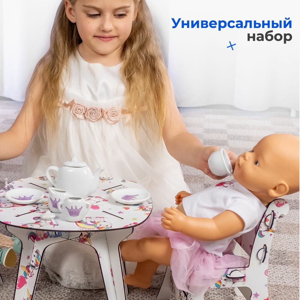 Стол и стулья для кукол пупсов до 45-53 см "Веселые Единороги" интересное: