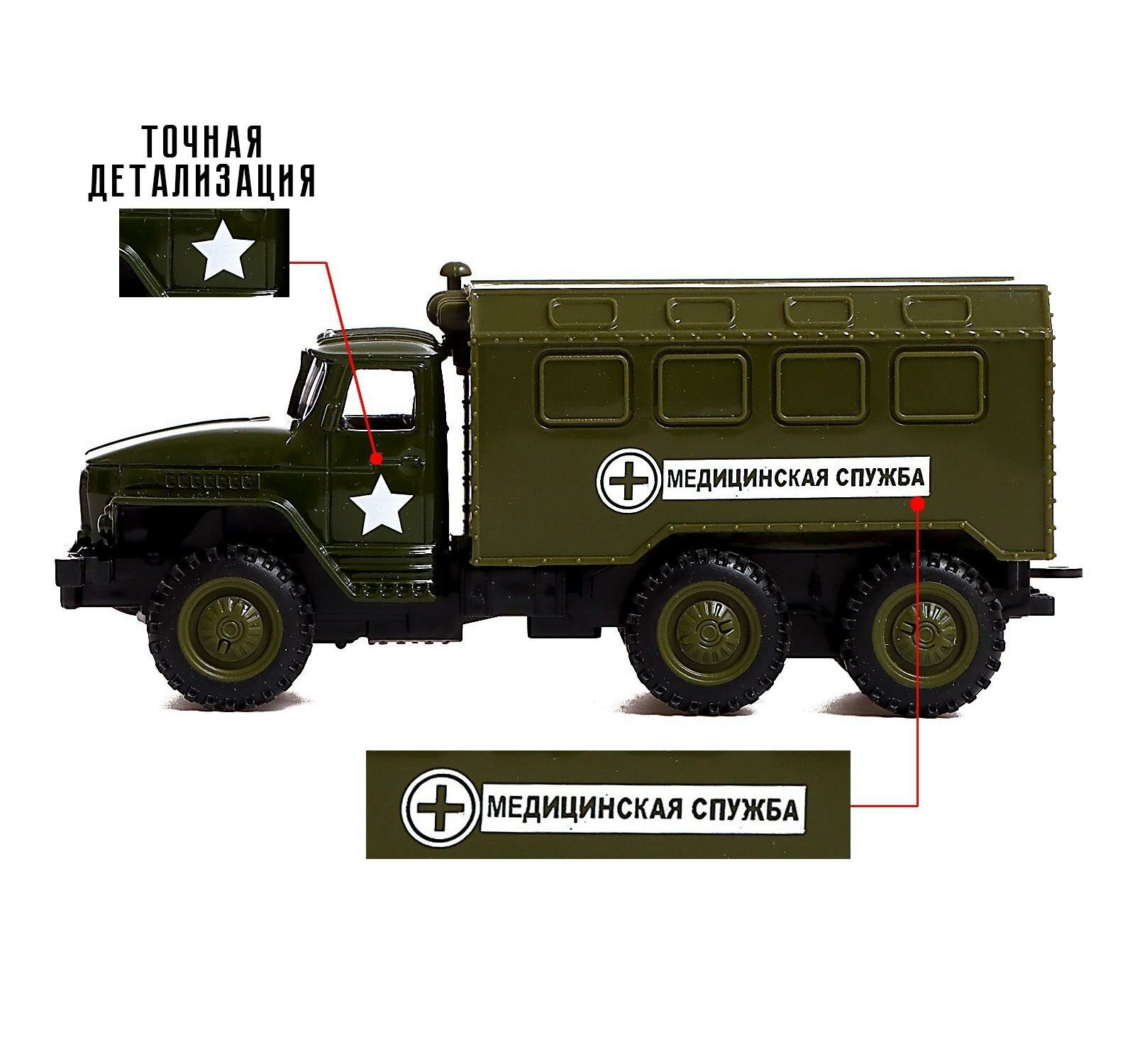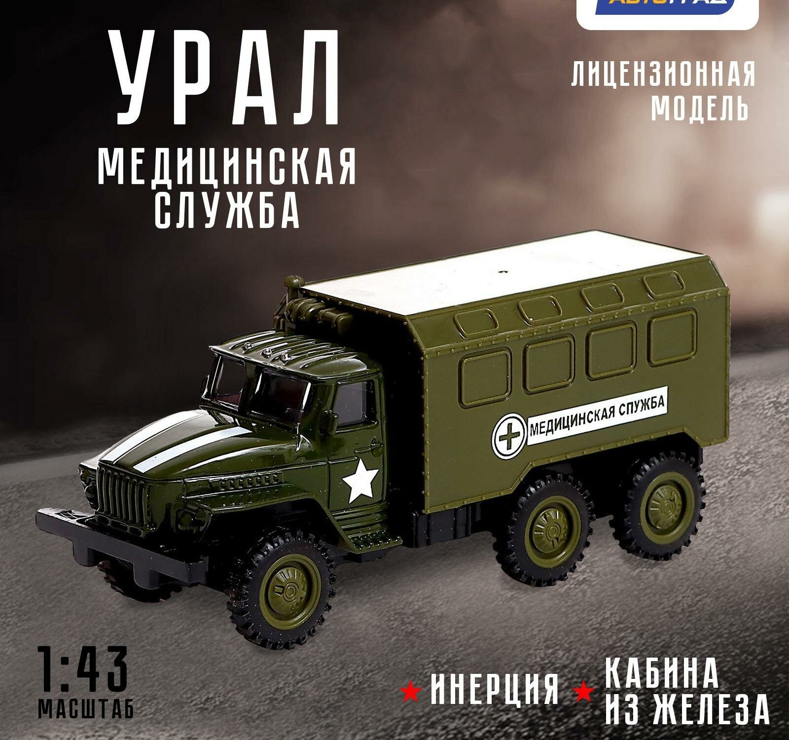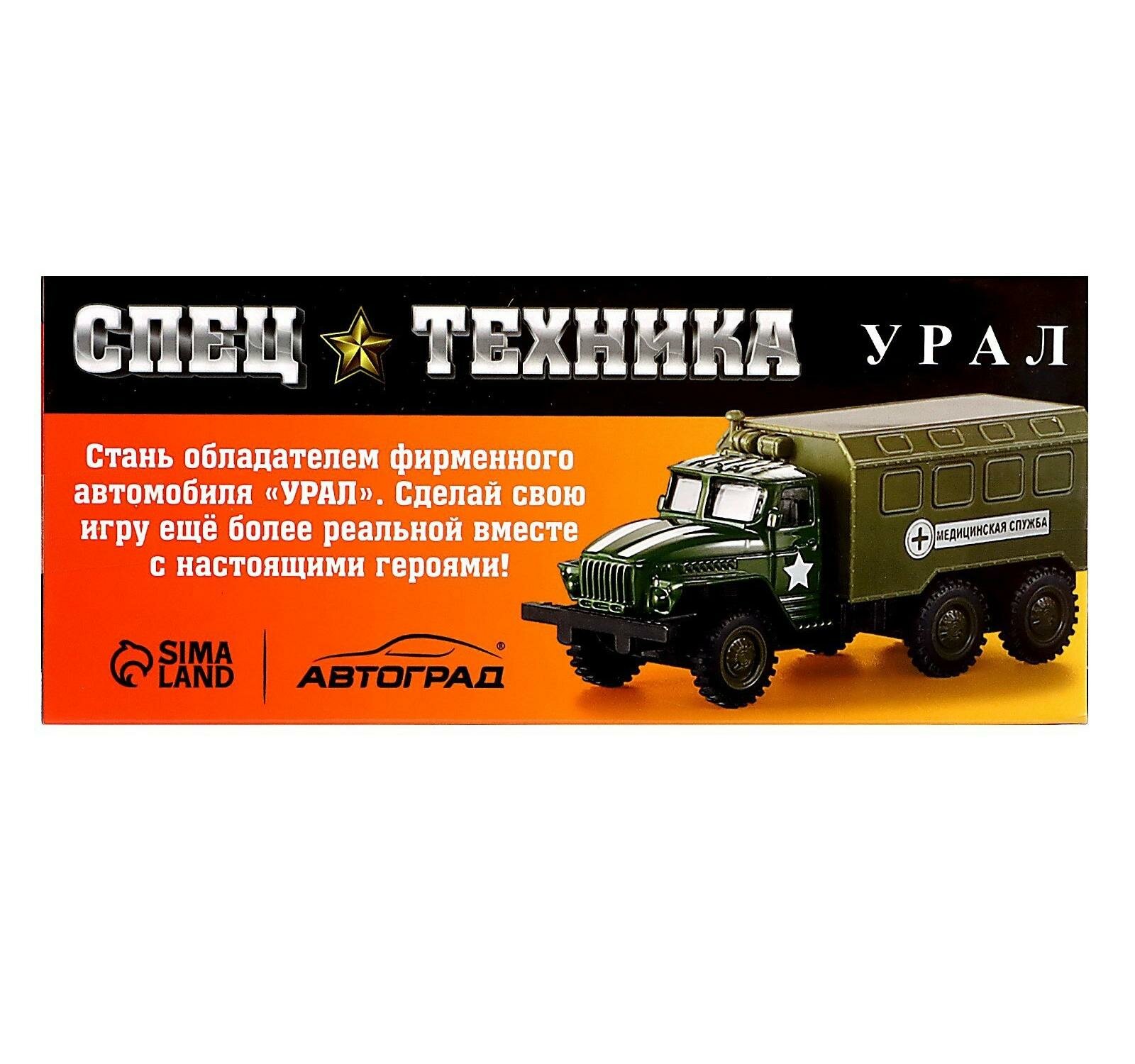 Грузовик металлический Автоград "урал "Армия", инерция, масштаб 1:43, цвет зеленый (1501) интересное: