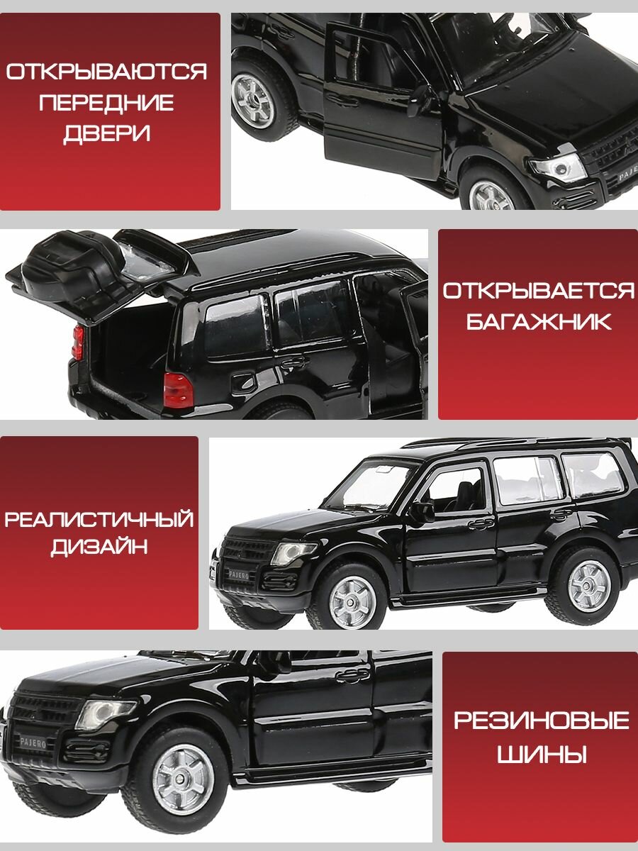 Машинка детская Mitsubishi Pajero 12 см, Технопарк, черная, открываются двери и багажник, металлический корпус
