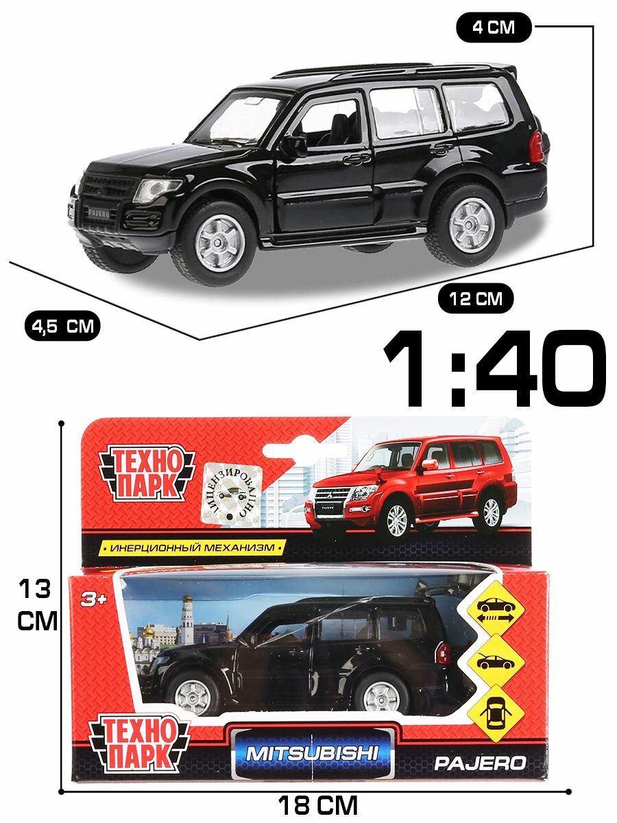 Машинка игрушка детская для мальчика металлическая Технопарк Mitsubishi Pajero черный инерционная 12 см