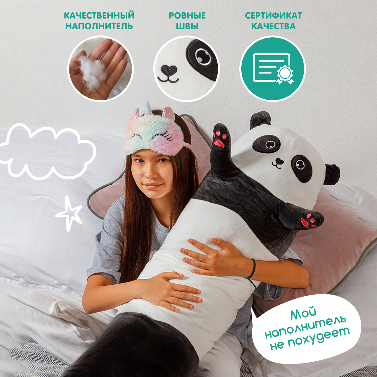 Мягкая игрушка подушка Панда-батон, 100 см
