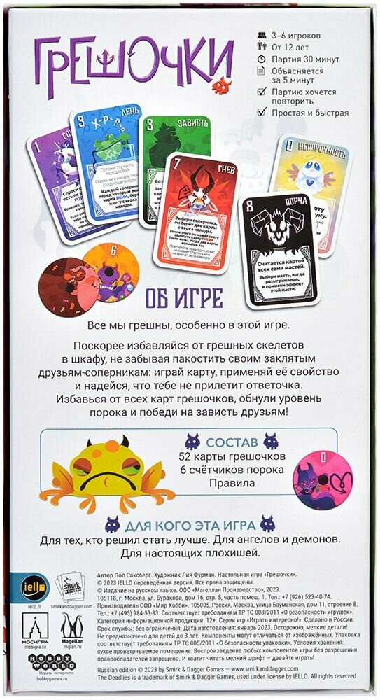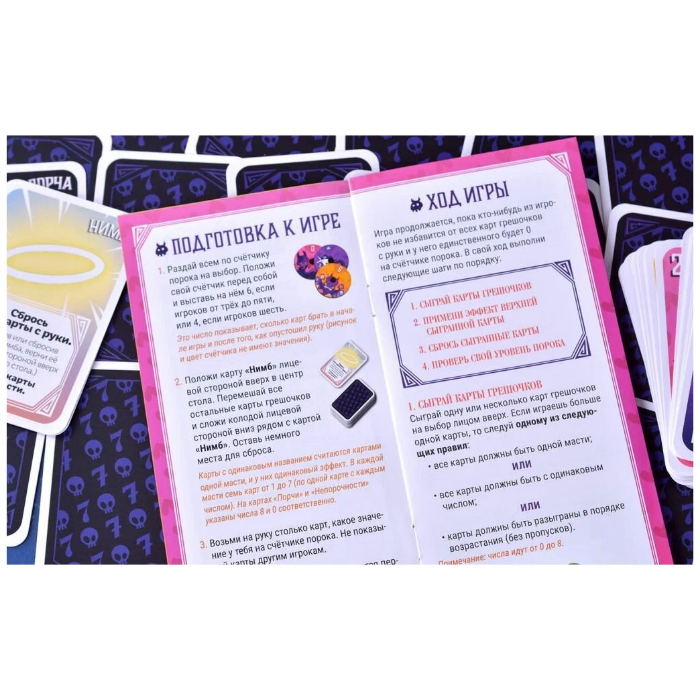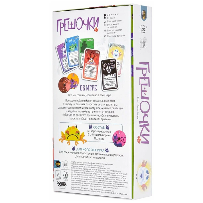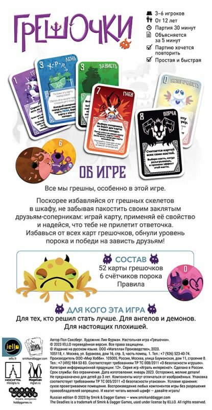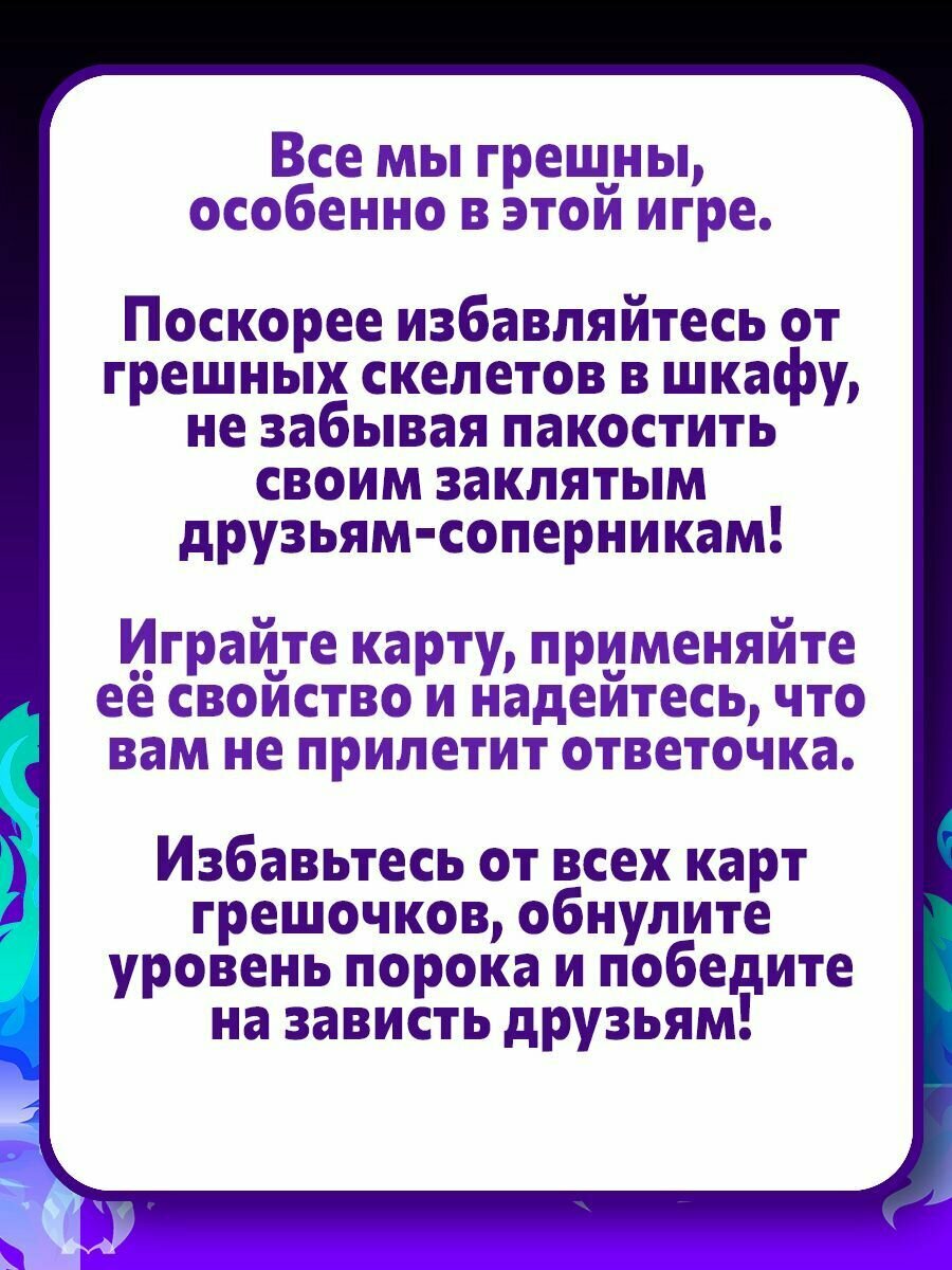 | Комплектация | 52 карты грешочков, 6 счётчиков порока, Правила |