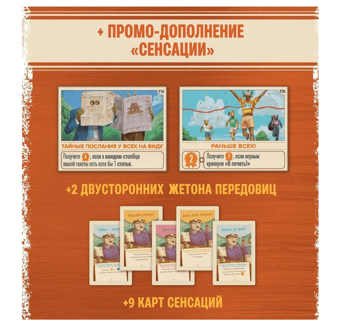Настольная игра Срочно в номер + промокарты (Русская локализация) интересное: