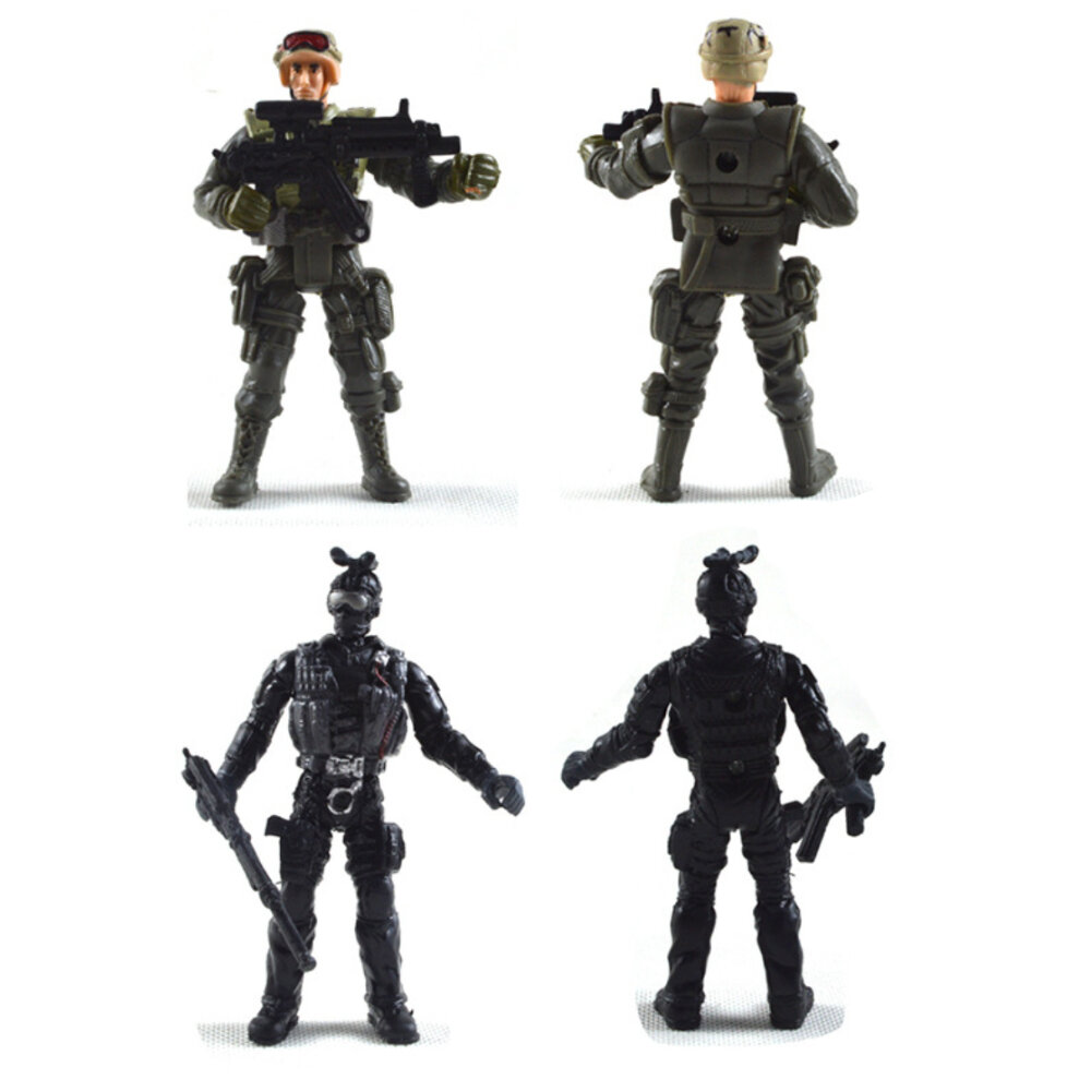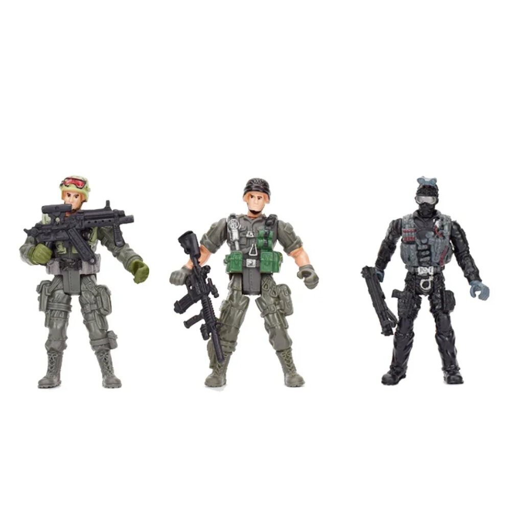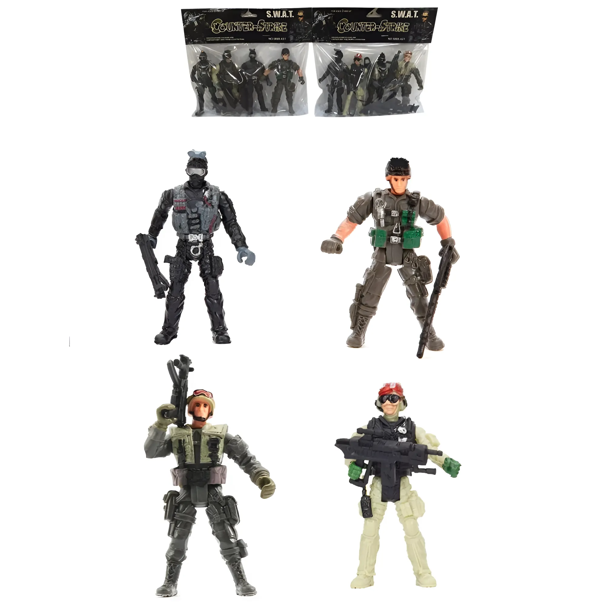 | Комплектация | - 4 подвижные фигурки спецназ; - 3 игрушечных автомата 5-7.5 см |