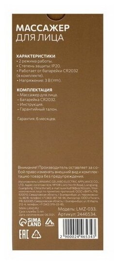 Массажёр для лица Luazon LMZ-033, электрический, 2 режима, от батарейки интересное: