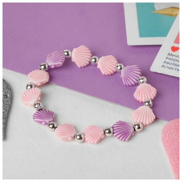 Купить Браслет детский "Выбражулька" ракушка, цвет розово-фиолетовый