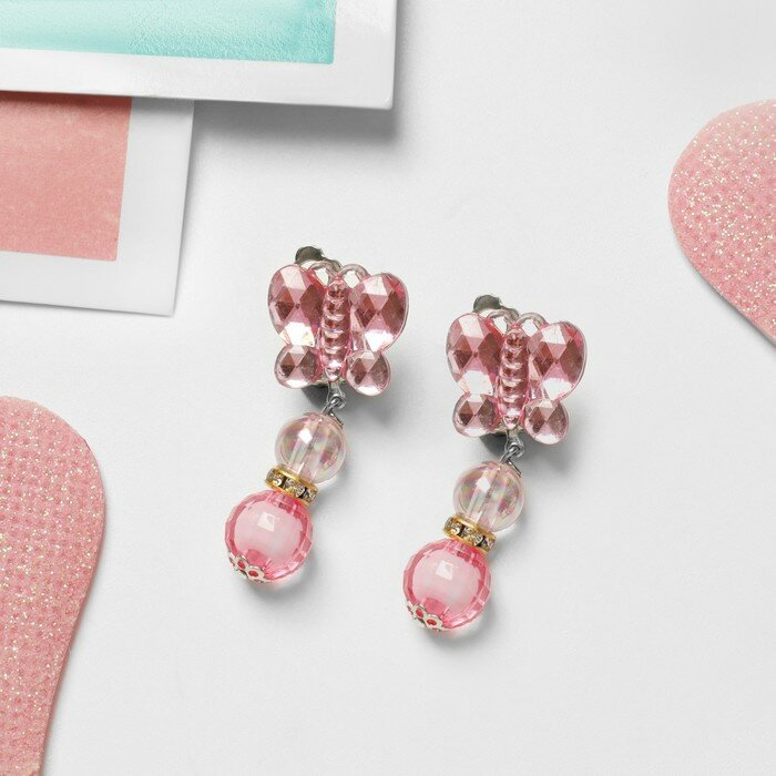 Купить Клипсы детские "Выбражулька" бабочка с бусинами, цвет микс