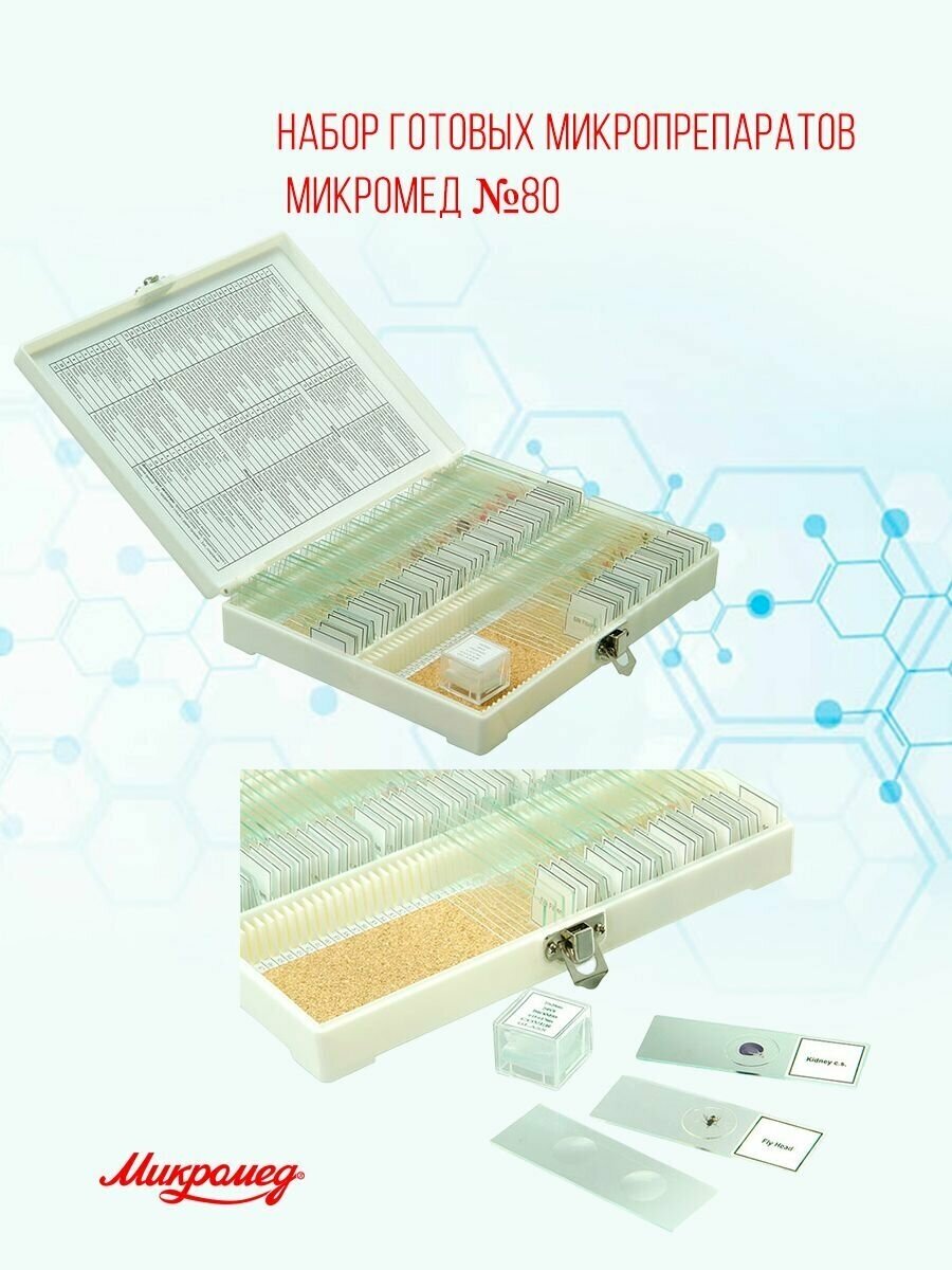 Набор готовых микропрепаратов Micromed №80 для детского/учебного микроскопа интересное: