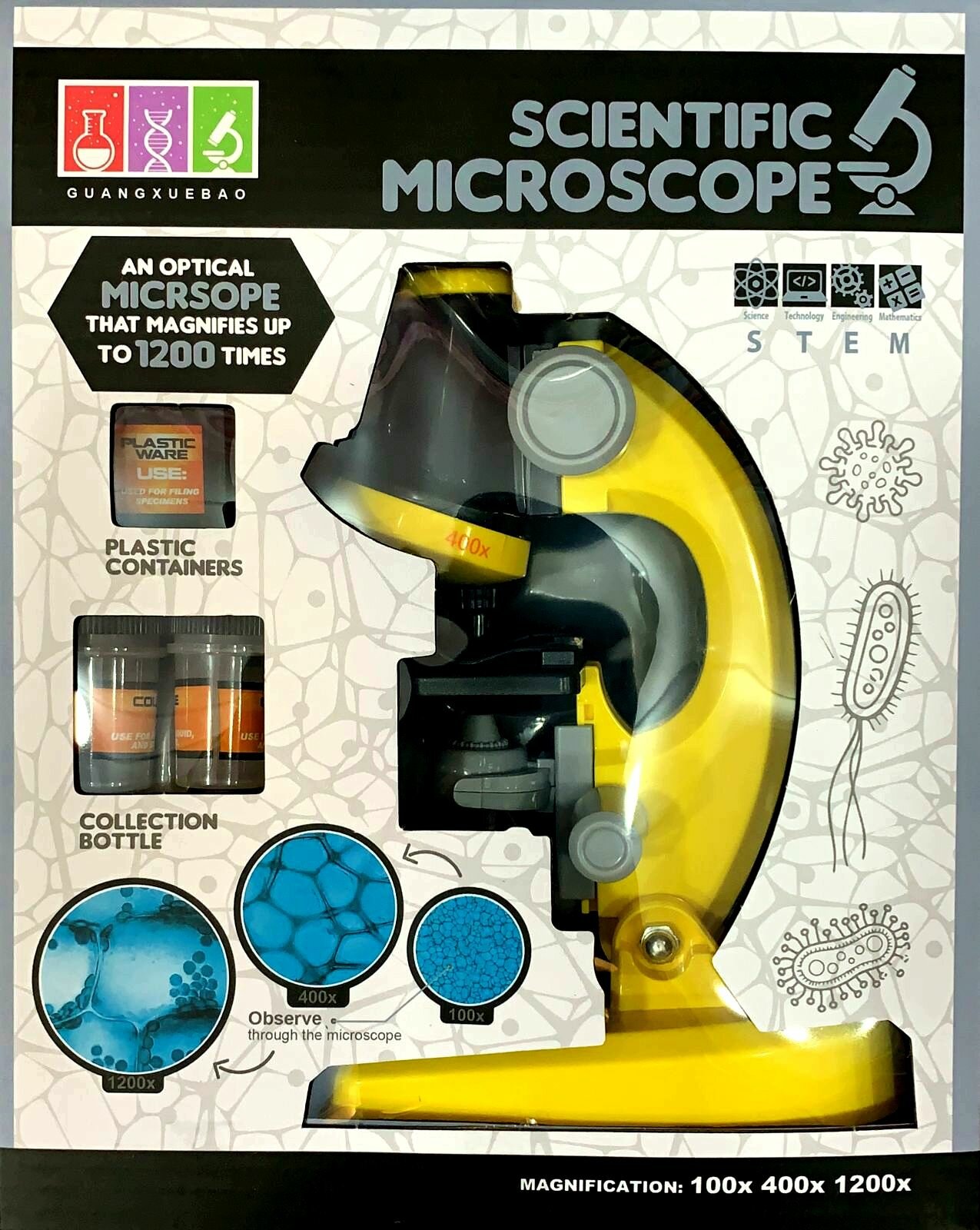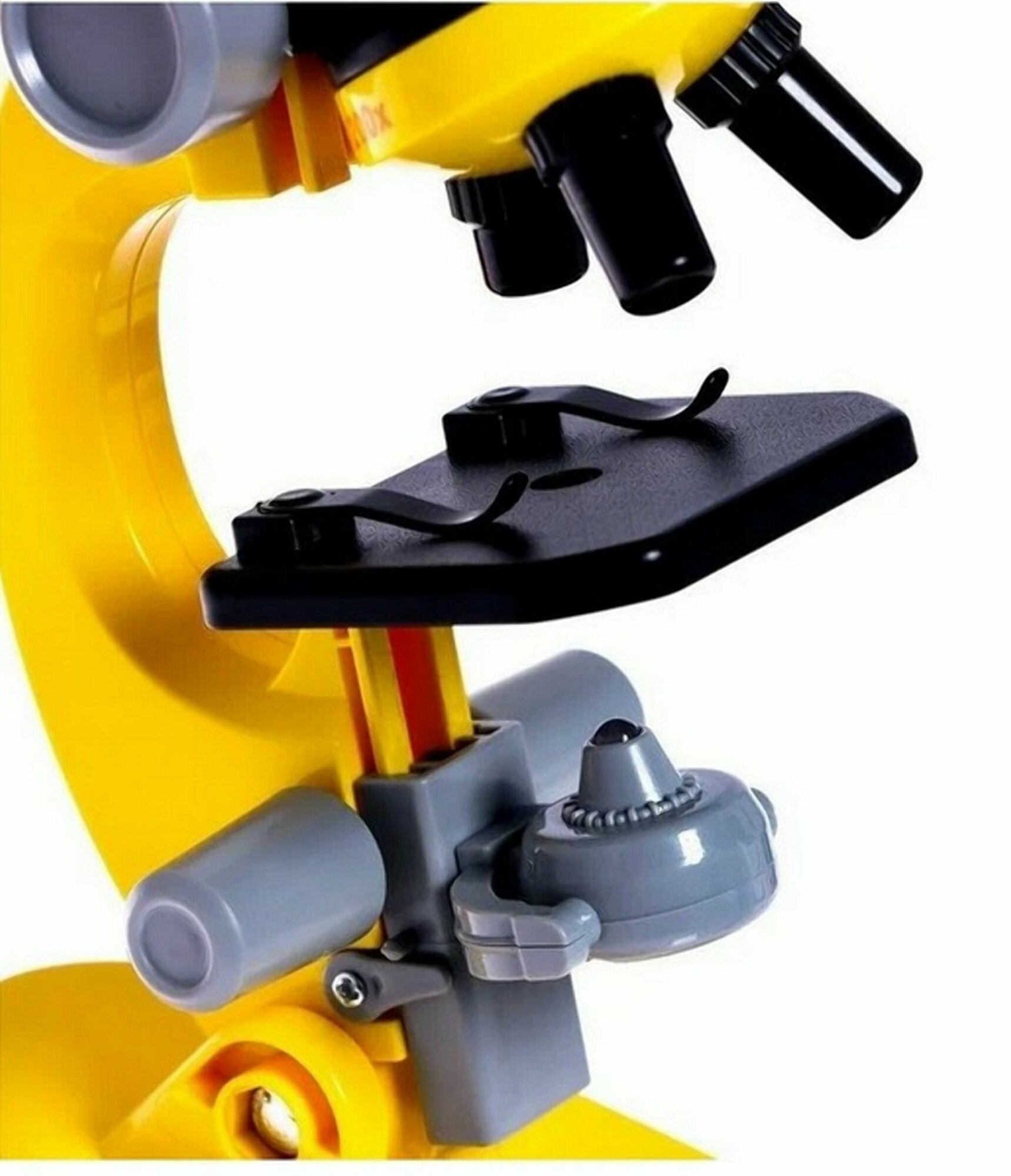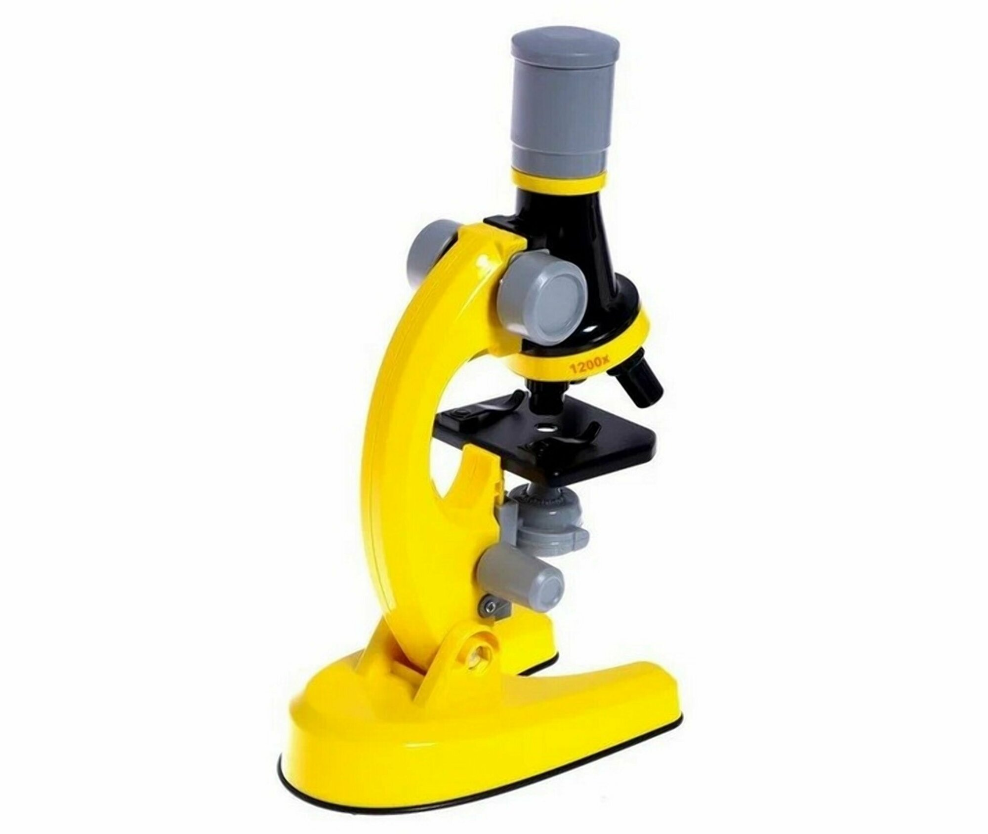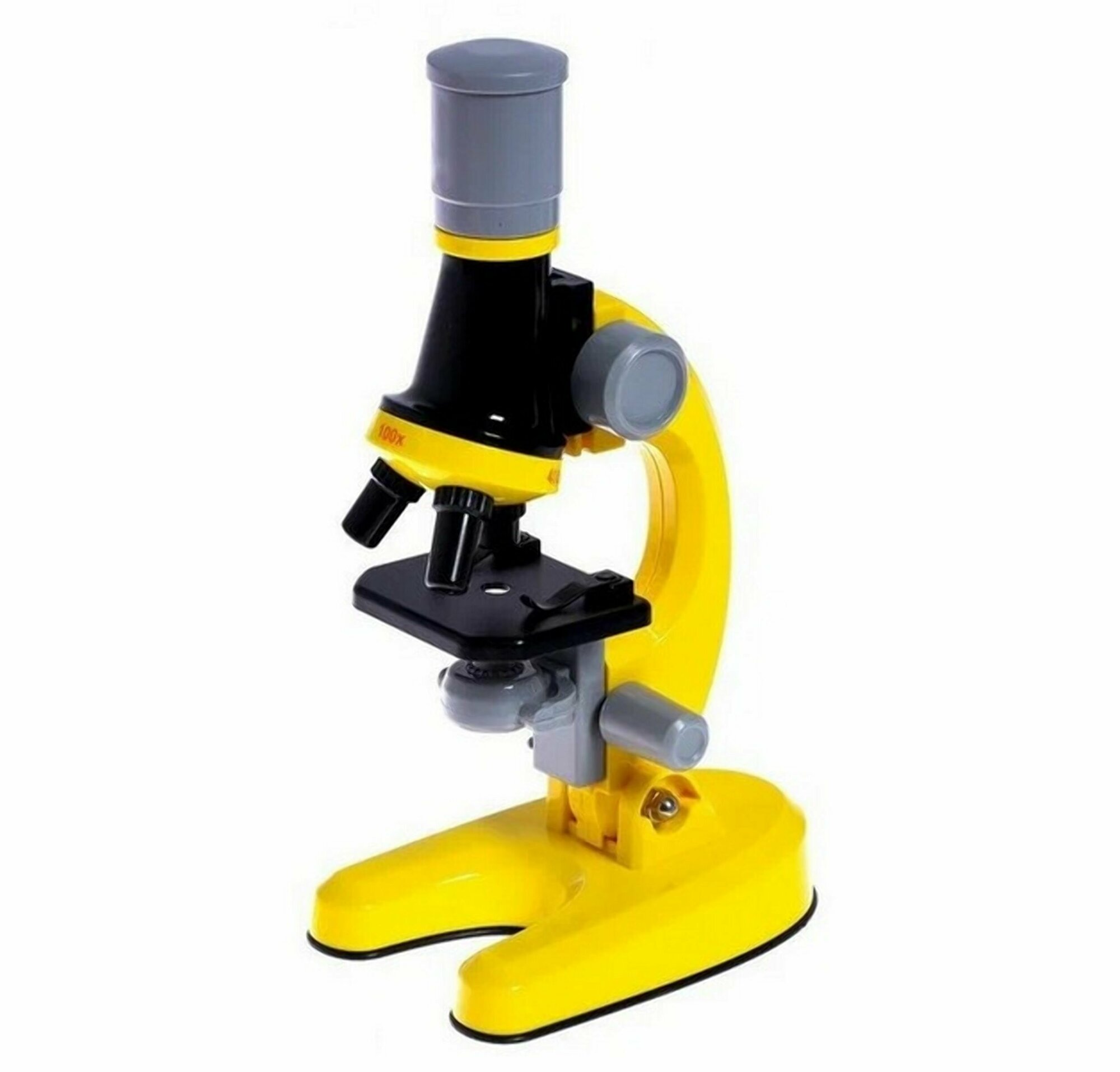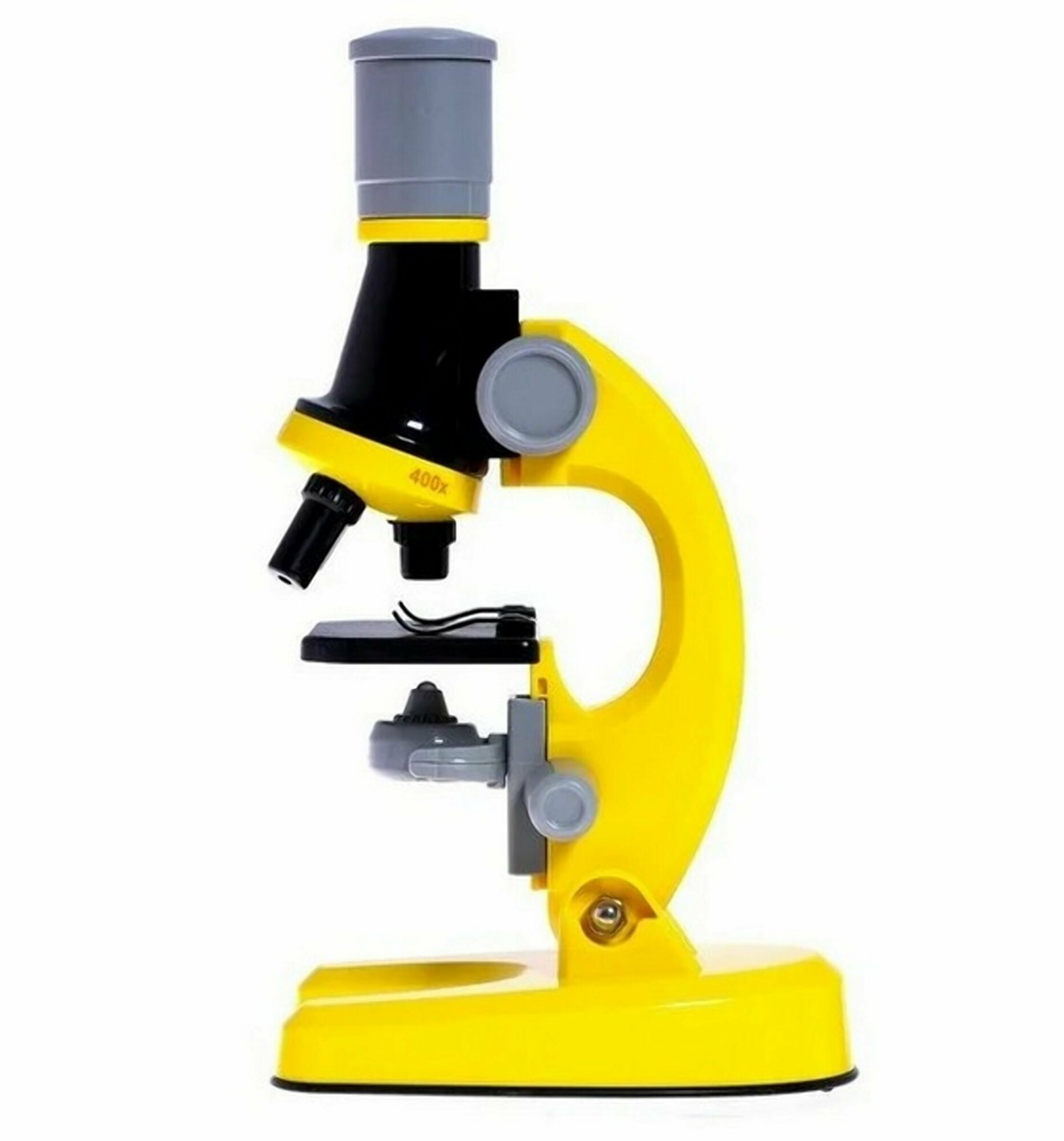 Купить Детский Микроскоп Юный ученый с 3 объективами: 100х, 400х, 1200х, подсветка, цвет желтый / Набор для опытов / Подарок