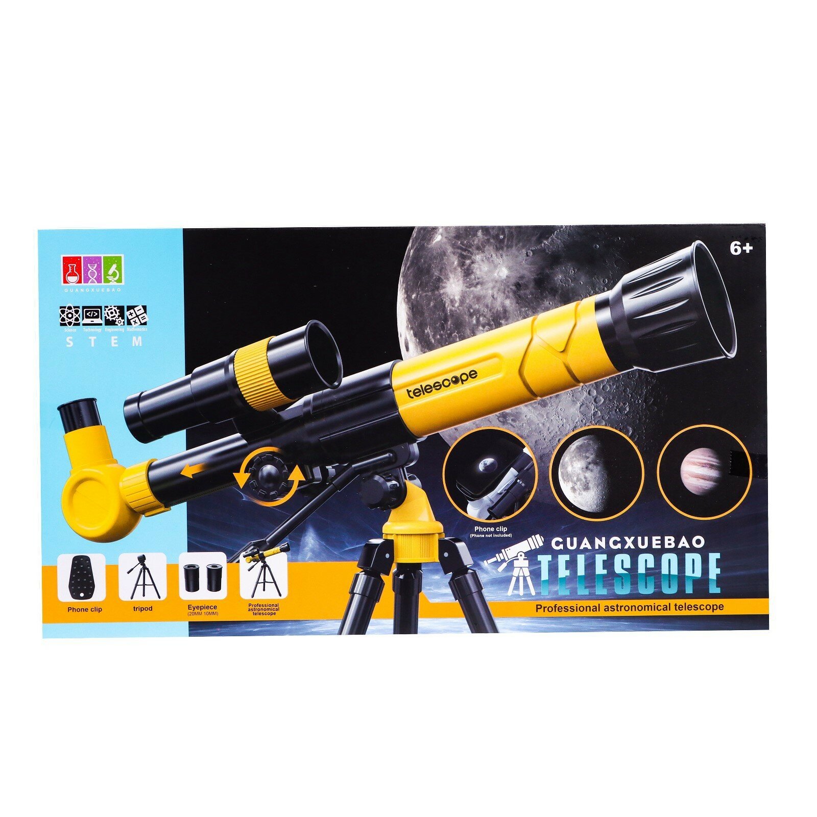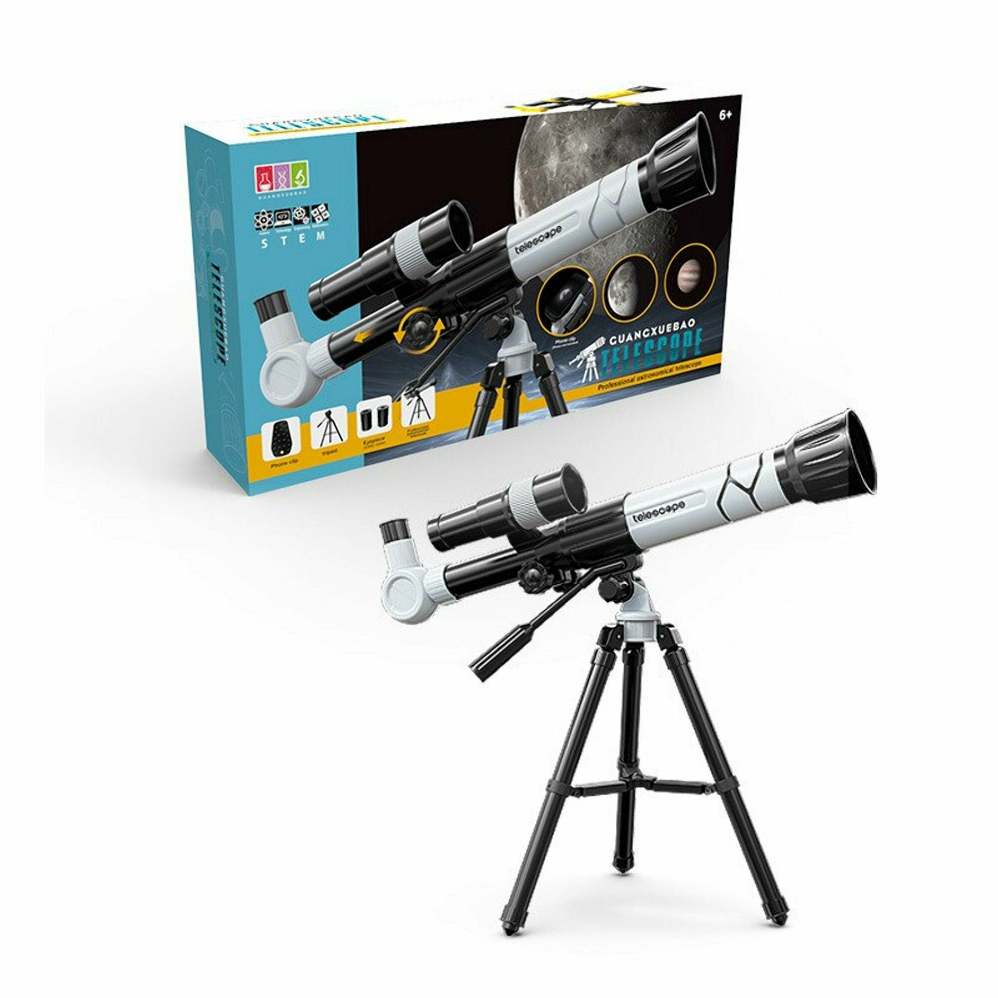 Рефракционный астрономический детский телескоп Юный астроном на штативе, с держателем для телефона, цвет белый, кратность увеличения 20х, 30х, 40х / Развивающие игрушки / Подарок интересное: